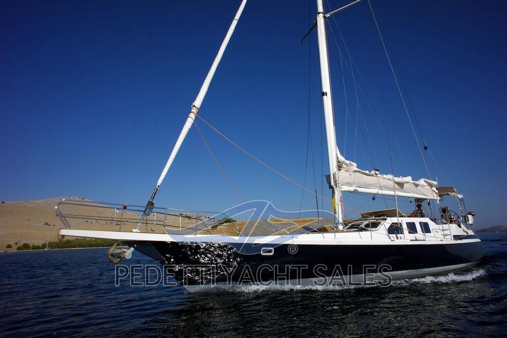 Meta france 60 del 1991 completamente rifatti gli interni nel 2004 ( era allestita x 2 persone) in alluminio completamente coibentata con espanso 3 cm , barca privata disponibile per la vendita, iva pagata, bandiera polacca, scafo blu, full teak da revisionare, versione 4 cabine 3 bagni Condizioni buone con manutenzione costante. Full optional con boma e albero in carbonio bianco, avvolgifiocco elettrico anno 2011, sprayhood + bimini, randa kewlar 2011 in discrete condizioni north sail fiocco nr2 dacron gennaker north sail buone condizioni, n.6 winches Harken elettrici revisionati 2024, dissalatore, generatore panda 9 Kwa 2011, 2 motori Nanni 120-60 hp. pur essendo una barca per fare il giro del mondo, o navigazioni antartiche data la sicurezza della navigazione per lo scafo in alluminio e la notevole coibentazione è dotato di tutto ciò che serve per una navigazione piacevole, il salone centrale dotato di ampie vetrate permette di navigare con lo joistick anche da dentro : climatizzatore da sistemare, riscaldamento webasto perfettamente funzionante, generatore, elica di prua , una comoda delfiniera, avvolgifiocco elettrico, sei winch elettrici, coperta da revisionare e tavolo pozzetto in teak, tendalino parasole, bimini e cappottina paraspruzzi. La cabina armatoriale è dotata di TV , tutte le cabine con impianto Hi-Fi, la cucina è equipaggiata freezer, frigorifero e forno. Ampi spazi per lo stivaggio di ogni cosa serva in vacanza. Recentemente, nel 2024, sono stati effettuati interventi di manutenzione che includono la revisione dei motori dissalatore winch e installato inverter e trasformatore 5 kw victron nuovo , l’installazione di 8 batterie al litio per 1000 ah con impianto solare a 24 volt nel 2022 garantiscono navigazioni lunghe e senza problemi di energia. Pur essendo una barca del 1991 sono stati rifatti completamente gli interni con legni pregiati in massello nel 2004 altri refitting nel 2013 e 2017 e usata e manutenuta al meglio fino a giugno 2024.