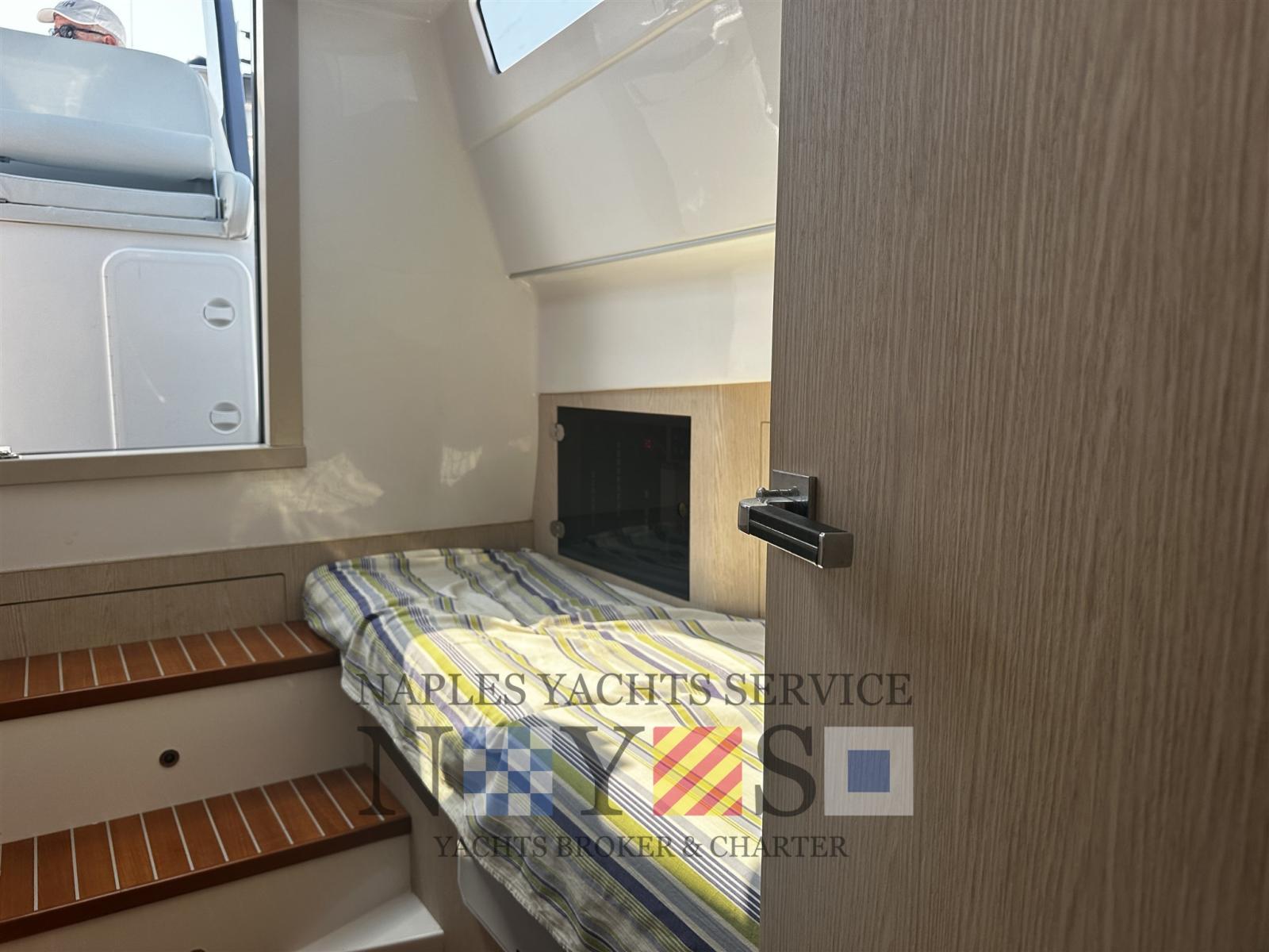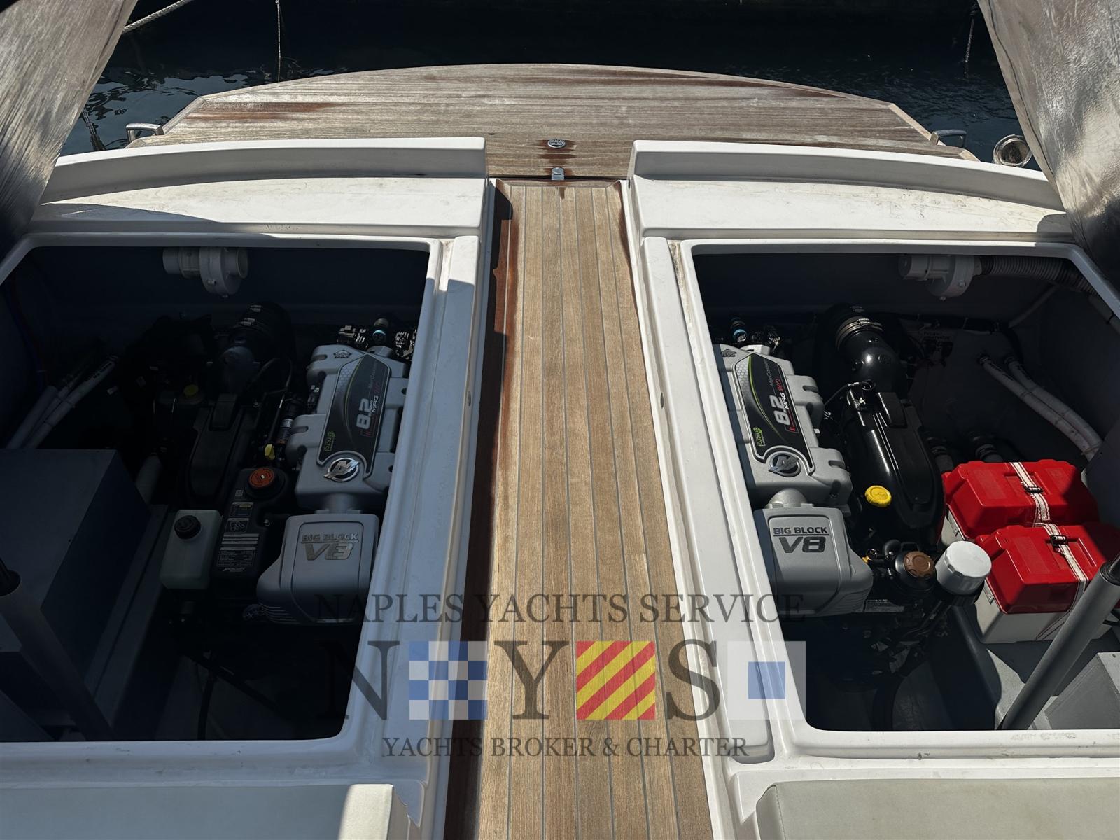 Allarme motore, 2 Apertura Vano Motore Elettrica (Indipendenti Dx e Sx), Autoclave, Batterie (2023), Camminamenti laterali in teak (Teak fuga grigia), 2 Doccia esterna (Prua e poppa), Luci di cortesia, 5 Pompa di sentina elettrica, Ponte in teak (Fuga grigia), Pozzetto Teak (Fuga grigia), Presa 220V banchina, Presa acqua banchina, Salpa Ancore Elettrico (1000 W), 2 Scaletta da bagno, Tavolo, 2 Tavolo pozzetto, T-Top.