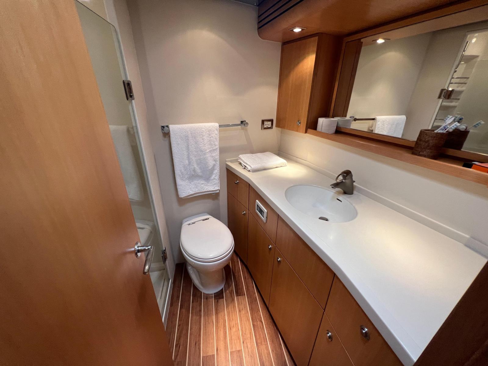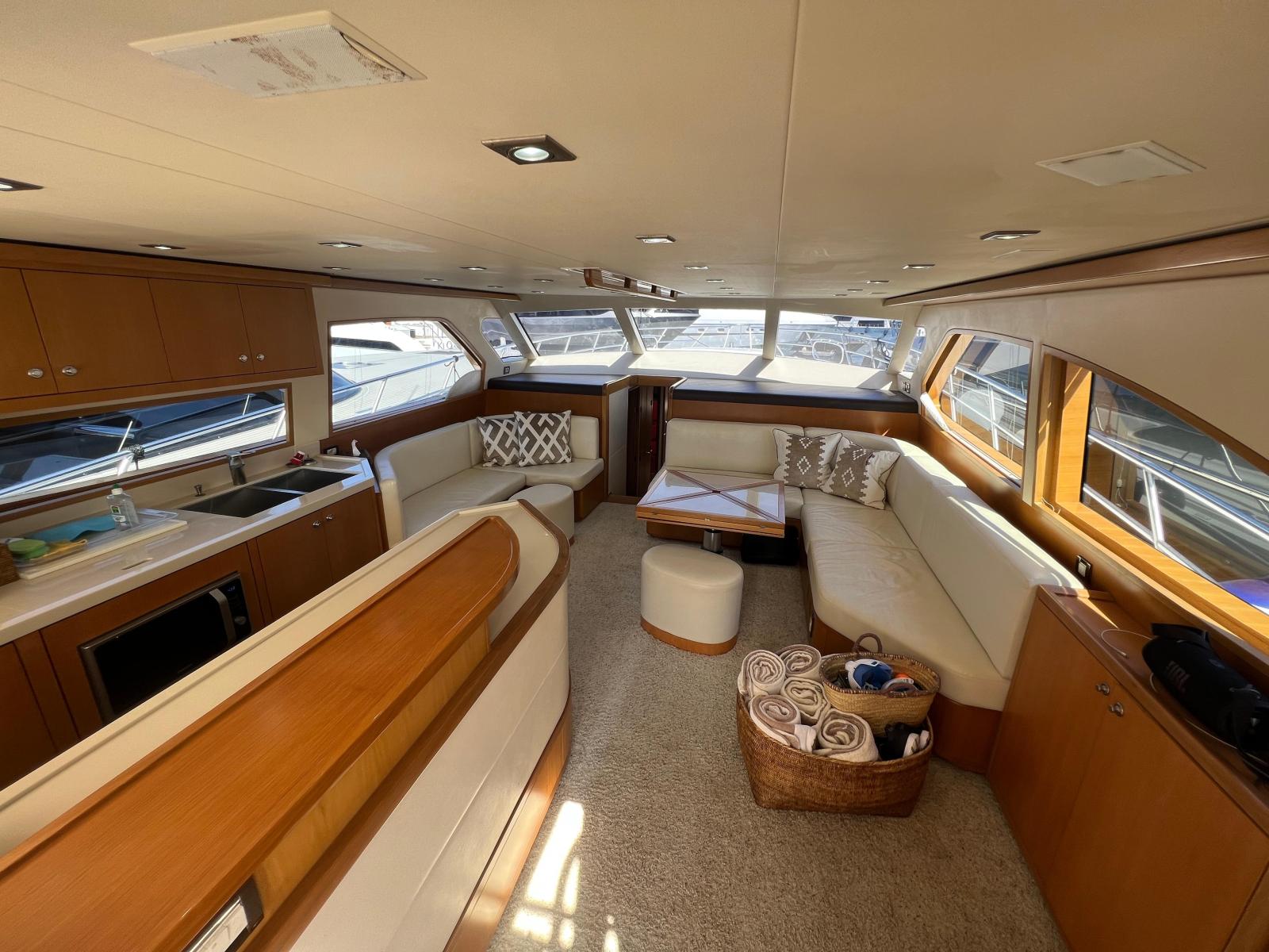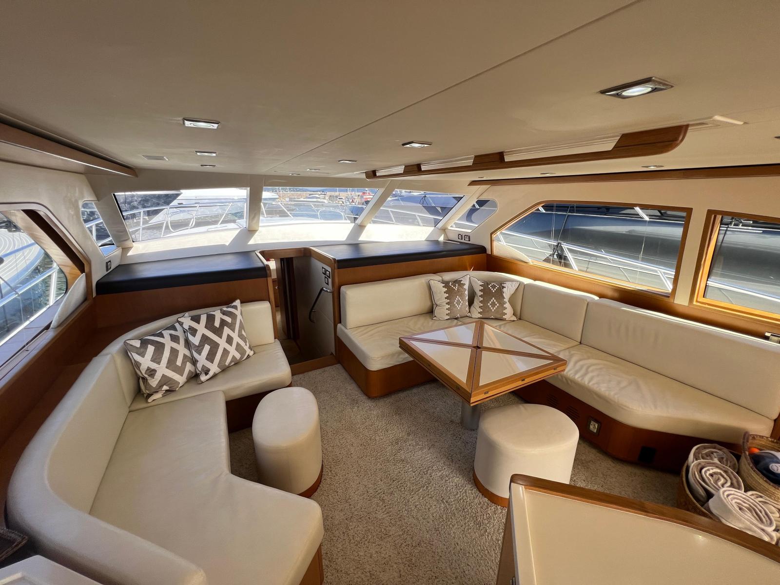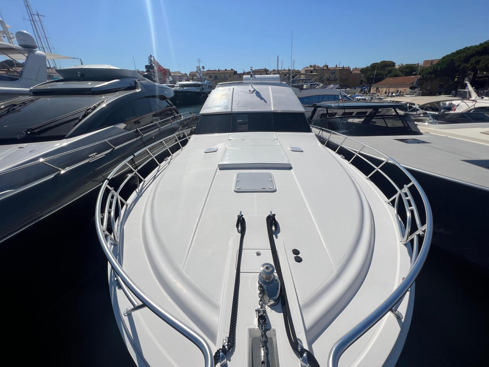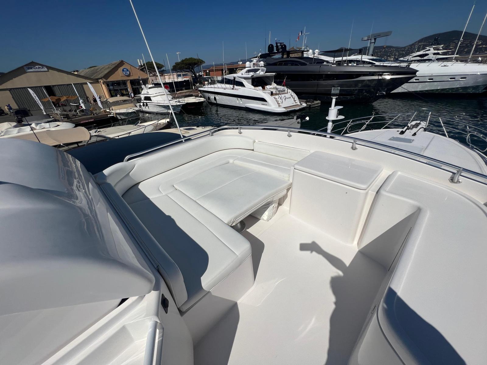 Description fournie par le constructeurThe impact of the classic Bertram 54' was distinctive in the marine industry became one of the most sought after Bertram models over the years. The 540 is the quintessential sport-fishing machine, maintains the features of the classic 54', and adds innovative elements to a sport fish craft. The result was a yacht that delivers ultimate steadfast performance and sea keeping ability of a fishing vessel combined with the ultra luxury and comfort of a cruising yacht. Aside from its incredible seaworthiness, this model offers attributes to enhance the cruising experience. Undoubtedly, the most striking feature is the forward wrap around window that provides breathtaking views of the surrounding waters and allows for an incredible amount of natural light to shine through the interior of the yacht. The ambiance created from these windows and the open salon layout provides a unique experience for entertaining on the open water. Port and starboard stateroom windows also lend to added natural light and exquisite views of the sea. These state of the art windows are made of multiple layers of glass and are both tested and designed exclusively by Ferretti group's Advanced Yacht Technologies. They are engineered to hold up to the roughest sport-fishing conditions and are actually reinforced with directly into the fiberglass hull, contributing to the overall hull strength and design.The open view layout of the 540 is radiant with white oak, which provides an elegant richness and enhances the natural light that enters the salon. The galley area features a beautiful open bar area to facilitate movement between the salon and the cockpit entry way for a more open entertaining and dining experience. An innovative retractable aft cockpit window, which recedes down into the bulkhead for easy pass through of drinks and food was also added between the cockpit and the galley.Many other elements were incorporated into the design of the 540 to enhance the overall ease of use and to provide the ultimate entertainment experience for all of those aboard. Stereo sound systems were integrated into the bridge, salon and cockpit featuring iPOD connection for quality sound and easy control from any location on the boat. Additional amenities such as LED lighting, 12 and 110 volt outlets and extra cup holders were added for a more comfortable, modern day experience. Also, appliances and components were selected for their ease of serviceability for both U.S. and European markets.Outfitted as an extreme fishing machine, the 540 is also streamlined with features that adhere to the needs of the true fisherman. This yacht features underwater exhaust and maximized storage space to hold up to 25 fishing rods. Additional tackle storage is incorporated into the mezzanine along with a baitwell and freezer. The transom fish box can also be converted into another baitwell or icemaker with ease. The fish boxes on the cockpit floor have been made larger and deeper and are now placed on each side of the fighting chair for easier access from the transom door.