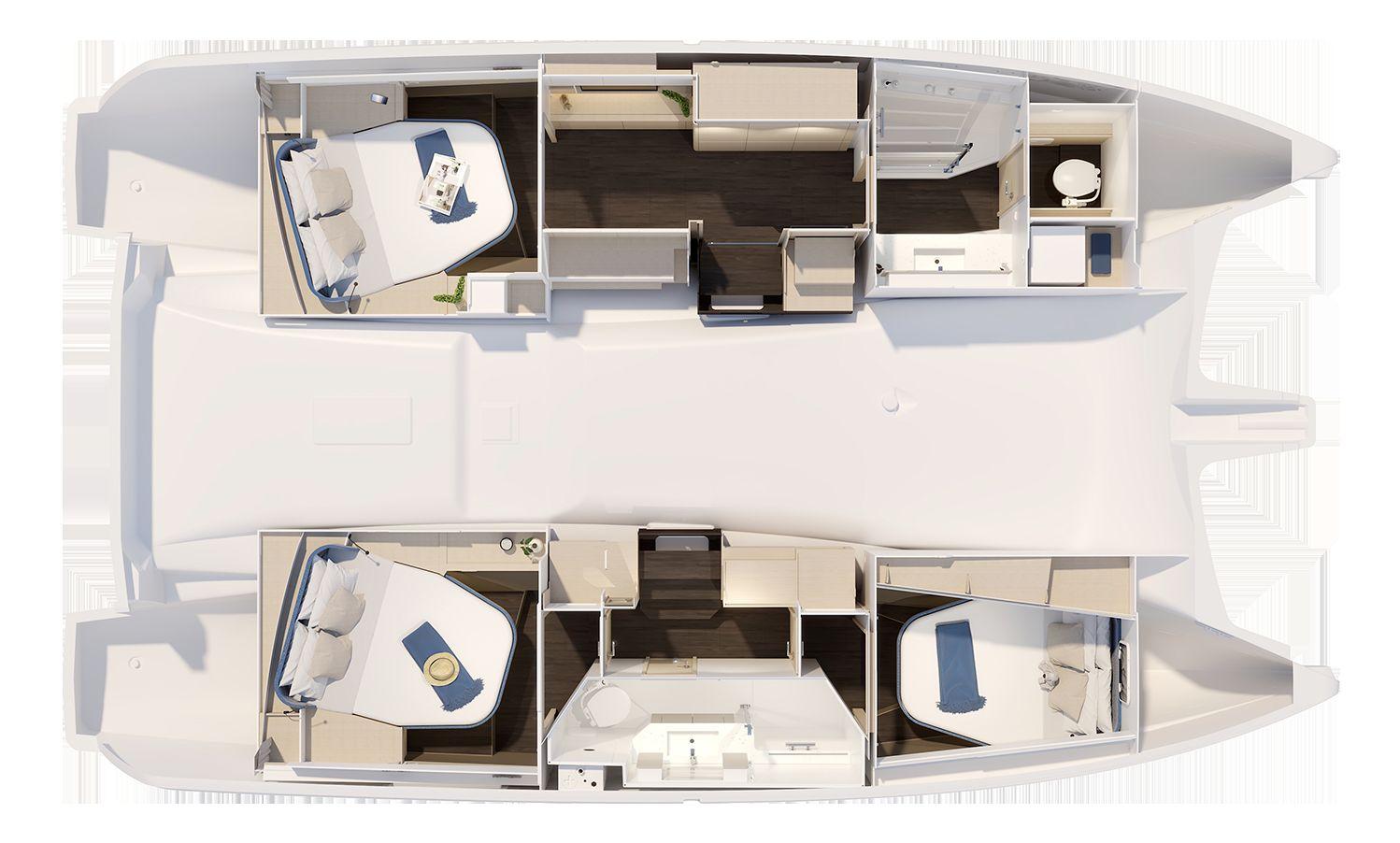 Materiale scafo : Coques et ponts fabriqués selon procédé d’infusion de résine polyester sur une âme de balsa, mousse PET ou mousse PVC