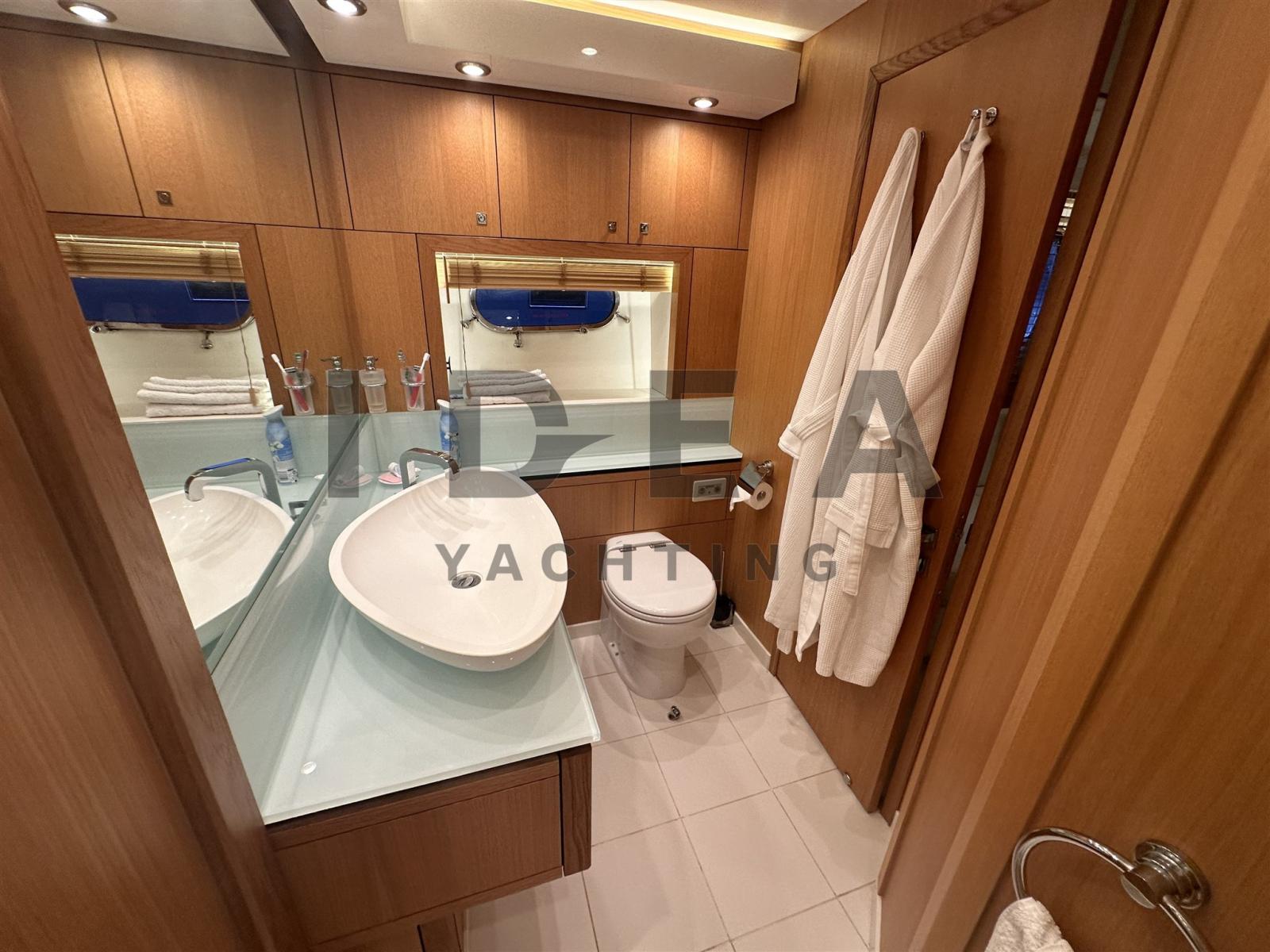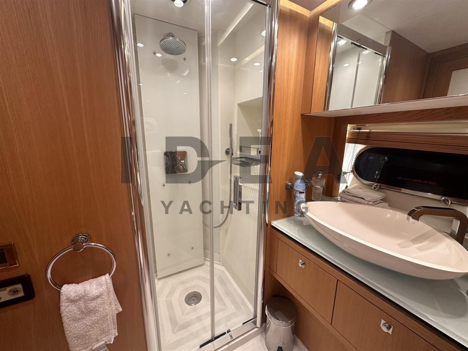 Allarme fumo/gas, Allarme motore, Allarme sentina, 2 Ancora, Autoclave, Camminamenti laterali in teak, Doccia esterna, Doppia timoneria, Elica di poppa - stern thruster (hydraulic ABT Trac), Elica di prua - bow thruster (hydraulic ABT Trac), Faro orientabile, Flap idraulici, Garage per tender (and jetski), Impianto antincendio, Lavandino nel Pozzetto, Luci di cortesia, Passerella (hydraulic telescopic Besenzoni), Piattaforma (hydraulic), Pompa di sentina automatica, Pompa di sentina manuale, Porta ingresso, 2 Porta laterale, Pozzetto Teak, Presa 220V banchina, Presa acqua banchina, Raddrizzatore, Ripetitore strumentazione, Rollbar, Scaletta da bagno, Stabilizzatori (Fins stabilizers ABT Trac), Tavolo pozzetto, Tromba, 2 Winch tonneggio di poppa (Lewmar), 2 Winch tonneggio di prua (Lewmar).