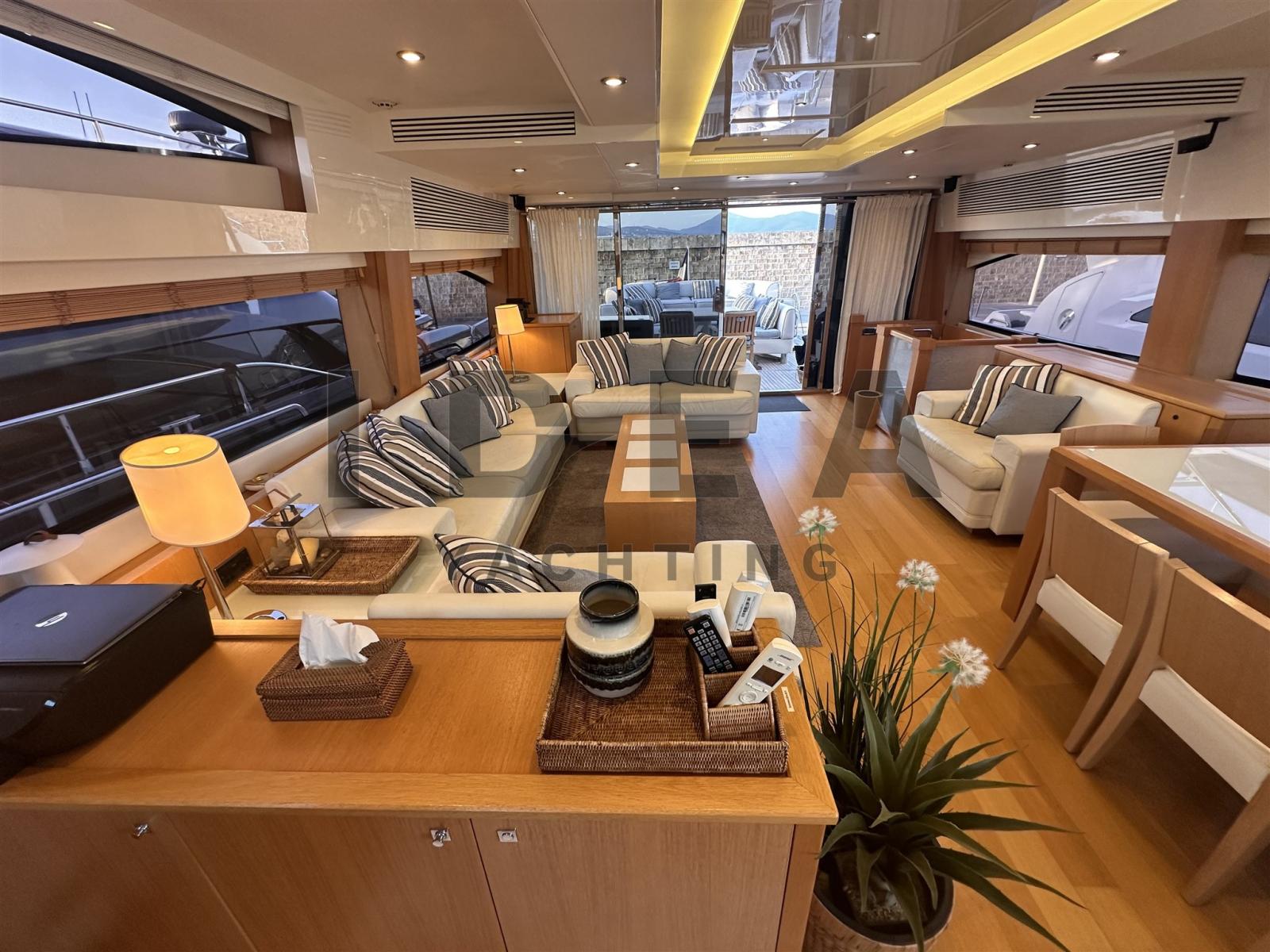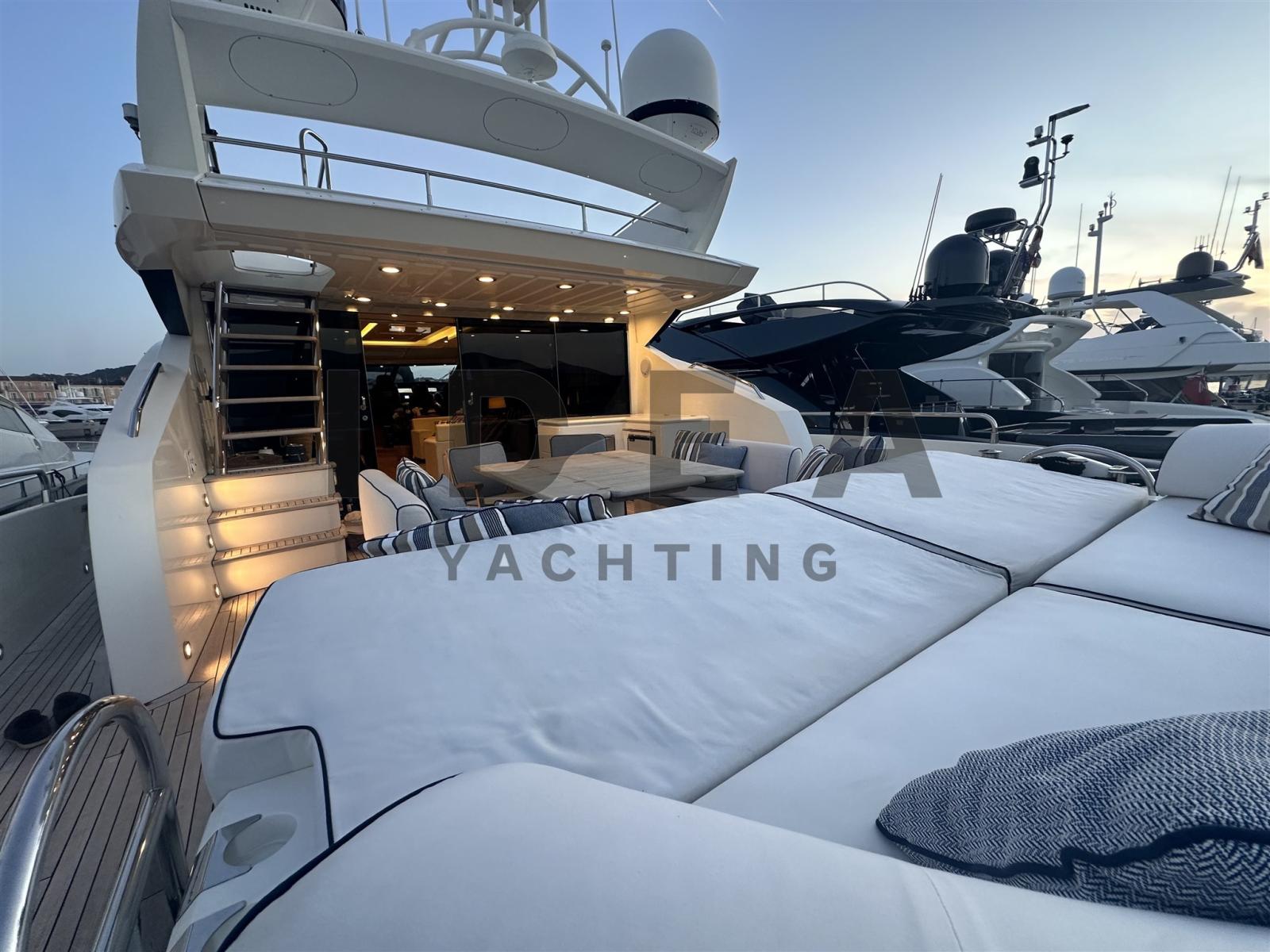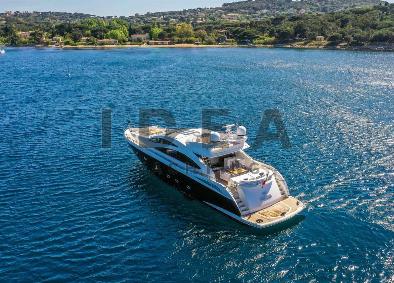This Sunseeker Predator 84, a 26.85-meter (88'1") motor yacht, is a premier vessel crafted by the esteemed British shipyard Sunseeker, featuring exquisite interior styling by the renowned British designer.