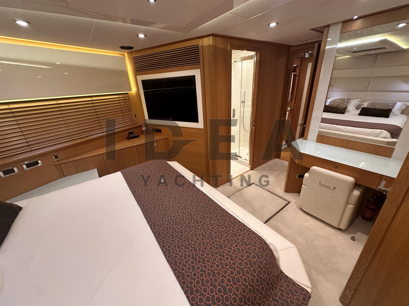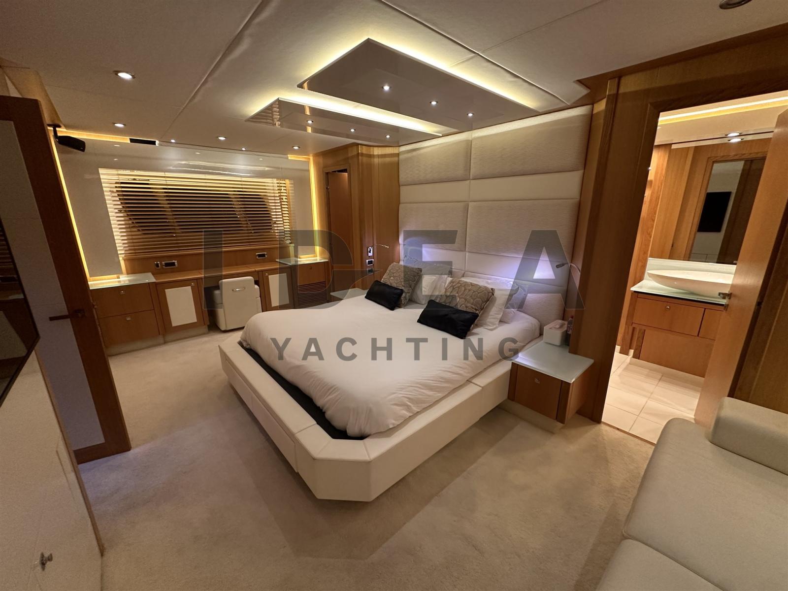 Accommodating up to eight guests, 'BST Sunrise' features four well-appointed suites: a full beam master suite with a queen-sized bed, walk-in wardrobe, and en-suite bathroom with a shower and seating area; a forward VIP cabin with a queen-sized bed and en-suite bathroom; and two twin cabins, each equipped with two single beds and en-suite bathrooms with rain showers. The yacht is also capable of carrying up to three crew members, ensuring a relaxed and luxurious experience. For entertainment, the yacht is equipped with LCD TVs, satellite TV, and a Bose sound system. Connectivity is enhanced by Wi-Fi access throughout the vessel, allowing guests to stay connected at all times. Comfort is prioritized with air conditioning available in all areas.