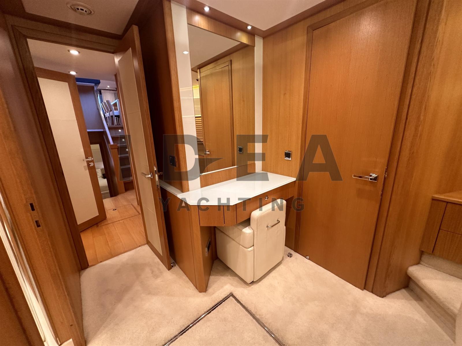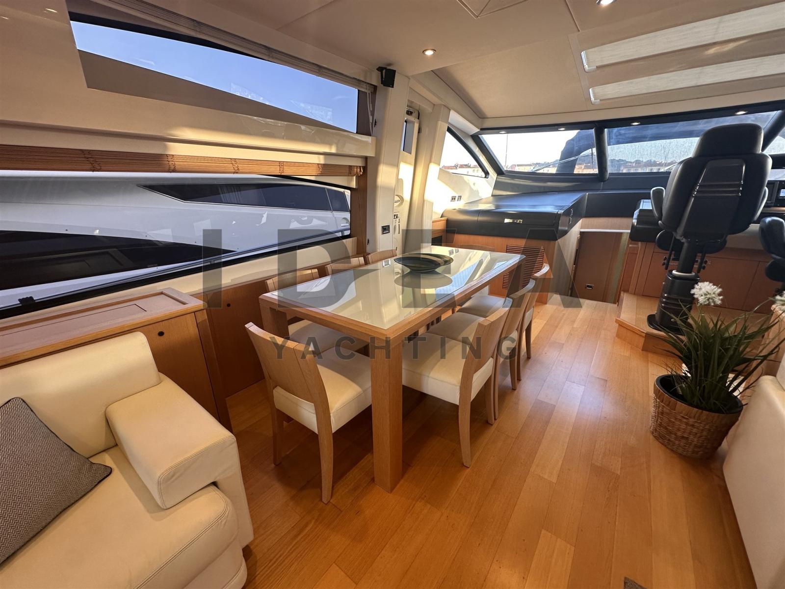 Angolo barra, Antenna radar, Comando motori elettronico, DSC vhf, 3 Log, Pilota automatico (Raymarine), 3 Plotter (Raymarine 12" (2 in the main helm station, 1 in the flybridge)), Radar (Raymarine), 2 Radio VHF (Raymarine 240E), 2 Sedile Copilota (Besenzoni).