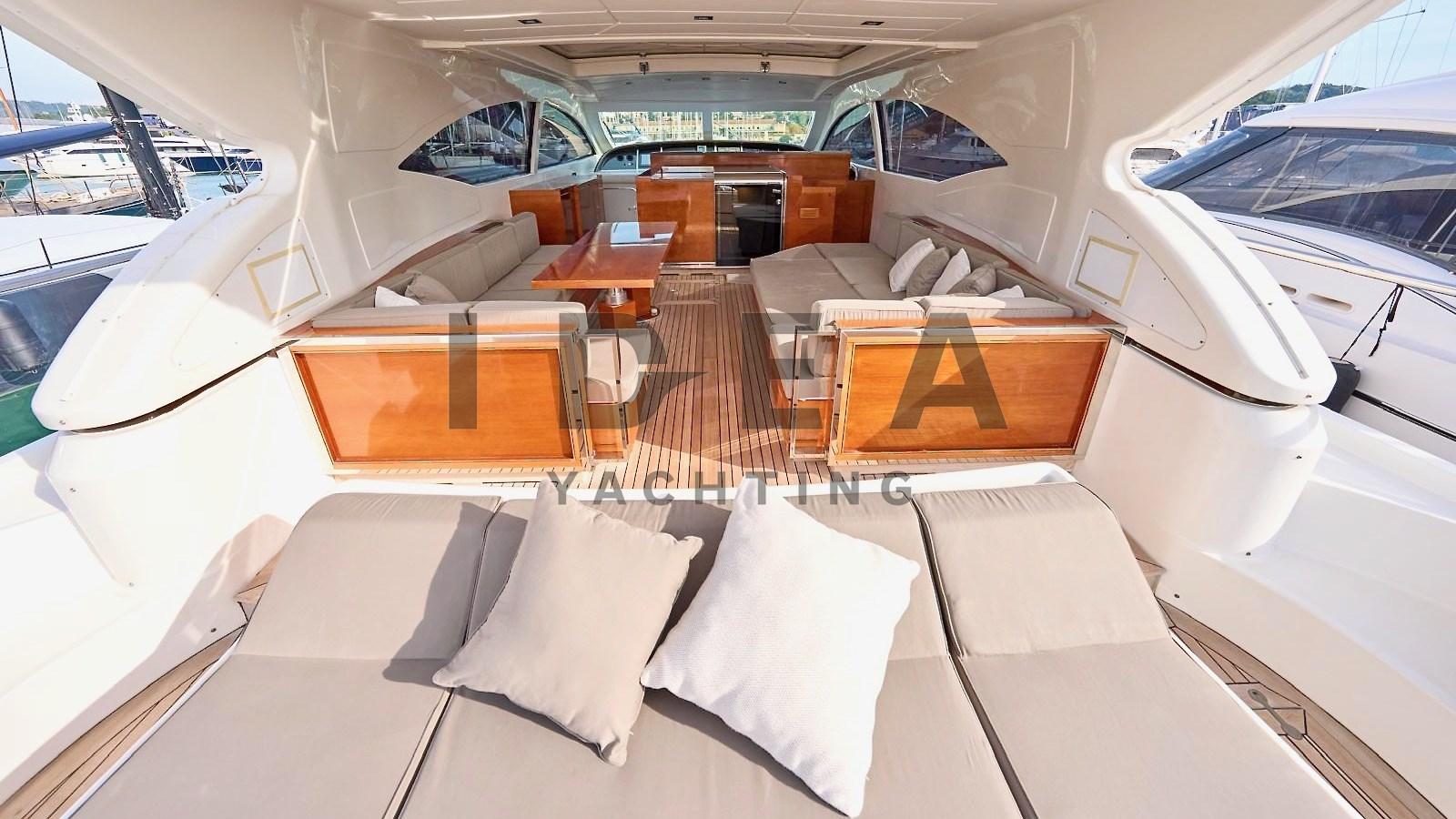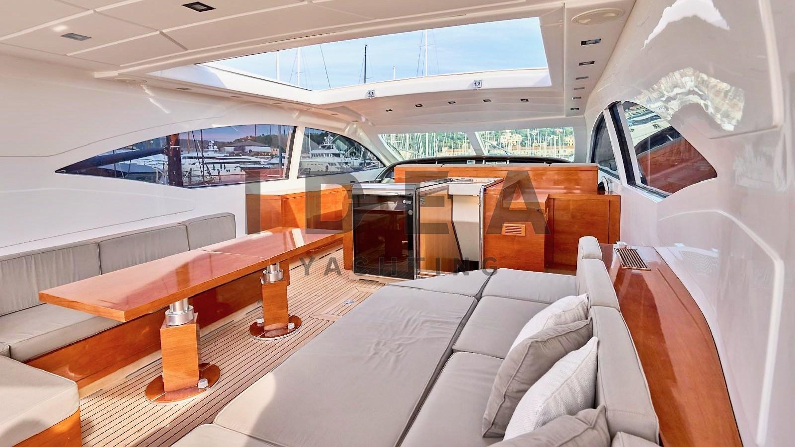 Step inside, and the embodiment of sophistication continues with an interior adorned in opulent furnishings that elevate the onboard experience. The generous salon spaces harmoniously connect with a fully equipped galley, ensuring that all the comforts are at your fingertips for extended voyages.