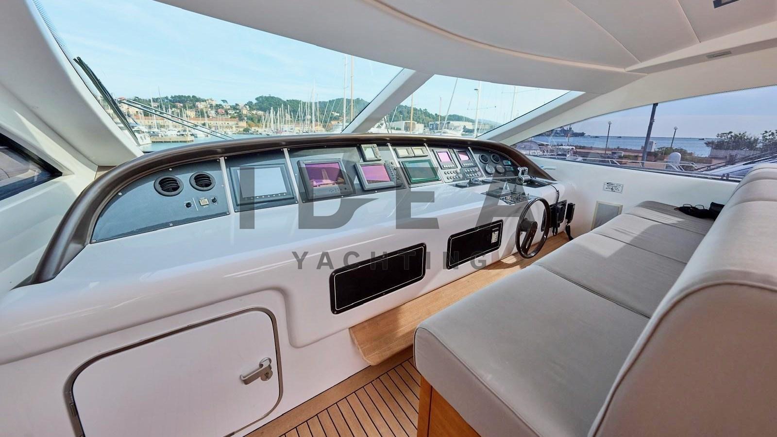 Angolo barra, Antenna radar (Furuno), Bussola (Zenith), Comando motori elettronico, Contamiglia (Furuno), 3 Display (1 PLC, 2 engines display), DSC vhf, Ecoscandaglio (Furuno), GPS (Furuno), Log (Navtex NX-700), Pilota automatico (Furuno), 3 Plotter con antenna GPS (Furuno), Radar (Furuno), Radio VHF (Furuno), Sedile Copilota.