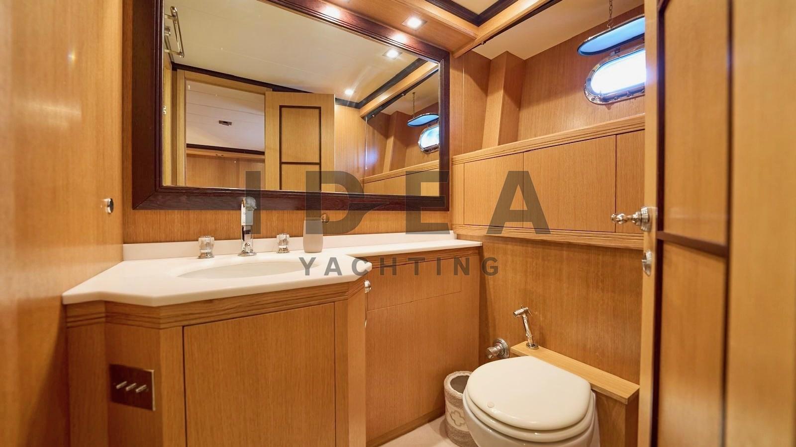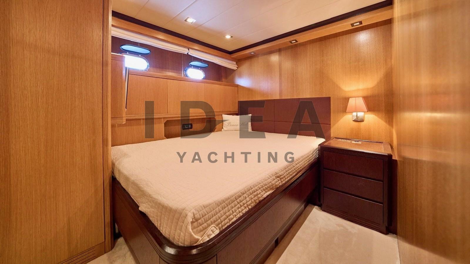 Accommodations include three elegantly appointed en-suite cabins, comfortably accommodating six guests, alongside a crew cabin that features double beds, which may serve as a versatile fourth guest cabin. The master suite, situated at the bow, stands as a sanctuary of luxury, offering abundant storage and a private en-suite bathroom. The remaining guest cabins comprise one with a double bed and another featuring twin beds, supplemented by an additional Pullman bed, each with their own en-suite facilities.