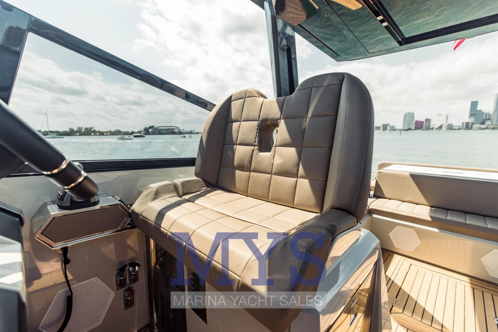 Tutti i comandi e i sistemi di navigazione sono integrati nella console in teak dalle linee morbide. Il timone, il joystick Volvo Penta IPS e due touchscreen da 12’’ promettono un’eccitante esperienza di guida.