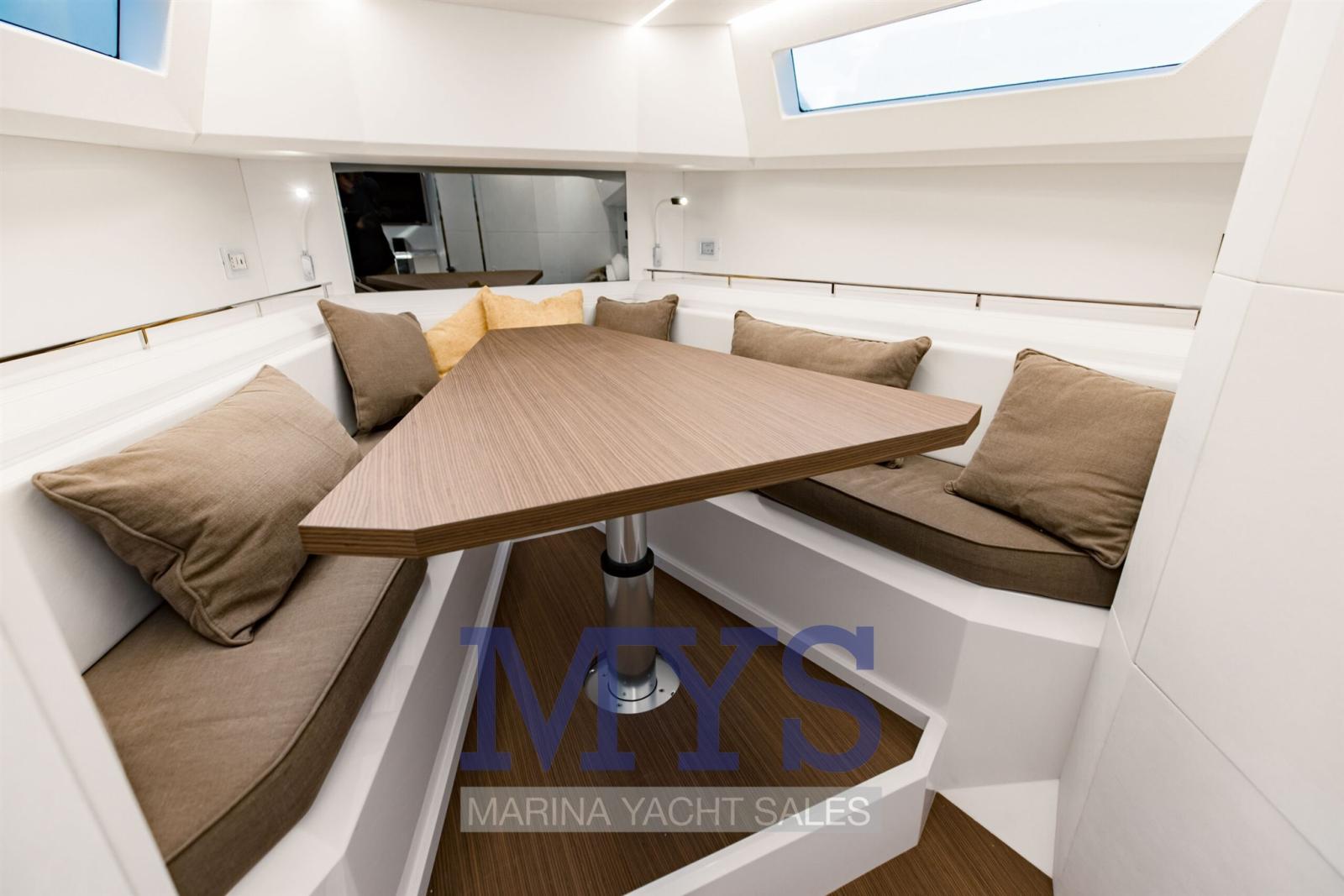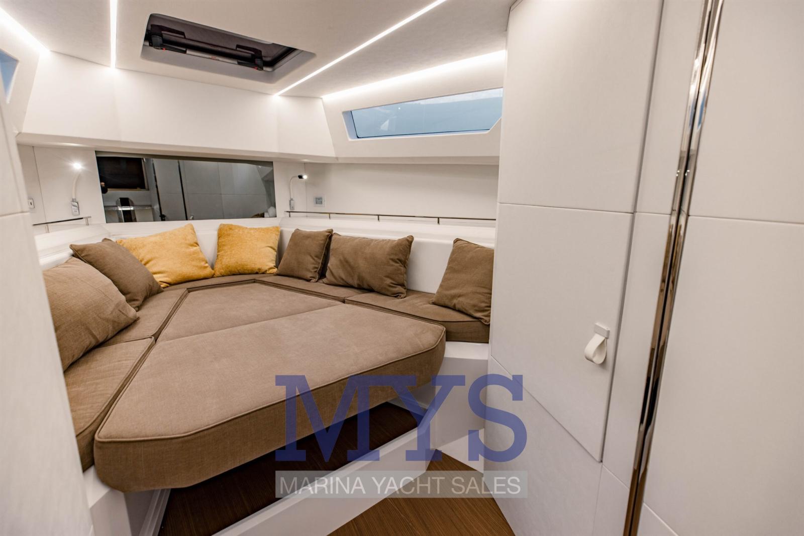 La massimizzazione degli spazi è l’idea di design sempre presente sul Walkaround EVO. Gli interni sono progettati come un open space da prua a poppa, con la dinette trasformabile che può diventare un letto matrimoniale extra.