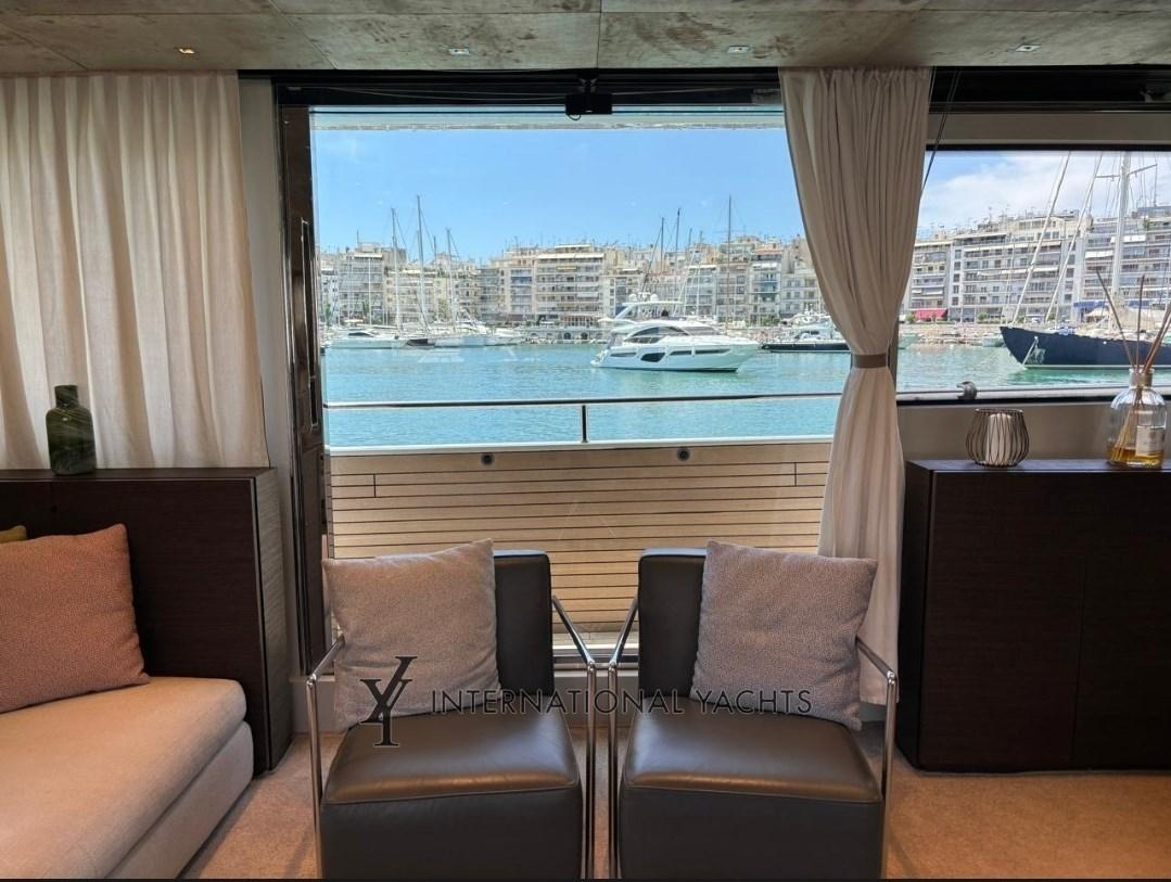 NAVIGATION & COMMUNICATION Raymarine Radar 72 Mg 2 15“ multifunction monitors for Raymarine plotter, GPS, Radar and Raymarine sounder Raymarine multifunction display on flybridge console Raymarine autopilot with repeater on flybridge Raymarine wind station Raymarine Tridata VHF on main console and Flybridge CCTV system including 7 cameras and monitors System Glendinning System Internal telephone System Wi-fi system with modem Satellite TV antenna Third control station in cockpit ZF joystick