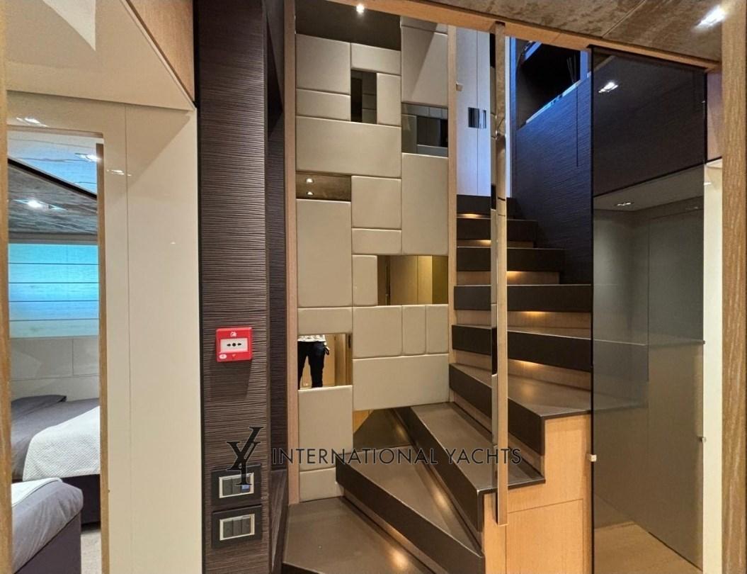 OTHER EQUIPMENT Tender Jet Ski (new) Teppan Yaky garage on Flybridge Ladder bathroom plumbing Galley equipped with ceramic hob, oven, microwave, fridgefreezer, dishwasher Wine Cooler Heated decking in master bathroom, VIP and guest cabins Refrigerator and ice maker in saloon Refrigerator and ice maker in wetbar Flybridge Interior in satin oak Inverter for fridge and TV Separate washing machine and dryer in crew