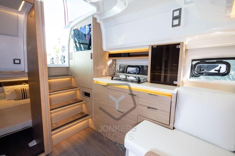 Con il Cap Camarat 10.5 WA, non aspettate più a esplorare piccole insenature o a fare traversate più lunghe. Con una velocità di crociera di 20 nodi e velocità di punta superiori a 40, lo scafo a V progettato da Michael Peters conferisce maggiore resistenza e rigidità a questa barca sportiva. Una volta arrivati a un-chor, ce n'è per tutti i gusti: un pozzetto di prua con tre chaise longue integrate perfette per rilassarsi, una terrazza apribile a babordo per creare un'ulteriore piattaforma da bagno dotata di scaletta da bagno, un pozzetto di poppa convertibile con tavolo rimovibile, tutto da scegliere in funzione con i propri piani.