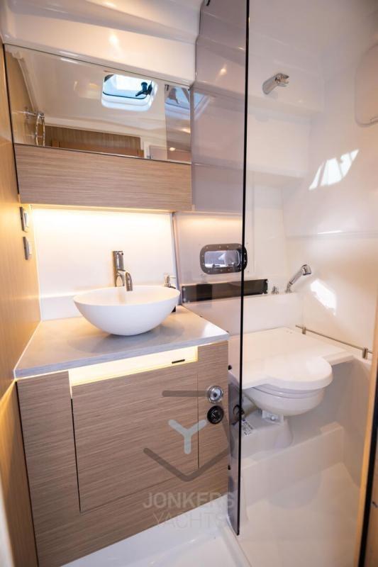 Il Cap Camarat 10.5 WA è ora disponibile in una versione con parabrezza integrato. Questo parabrezza alto e avvolgente definisce chiaramente l'area intorno alla plancia di comando, al riparo dalle intemperie. Ben protetti, il pilota e i copiloti possono comunque godere della brezza marina attraverso un sistema di ventilazione situato nella parte superiore del pannello centrale. Il comfort aggiuntivo fornito dal parabrezza completo ispira una maggiore sicurezza di fronte alle intemperie, per la massima tranquillità pur sfruttando appieno le prestazioni di crociera della barca. Con questa nuova versione, lo stile generale della barca è stato ridisegnato per un look and feel più deciso e sportivo.