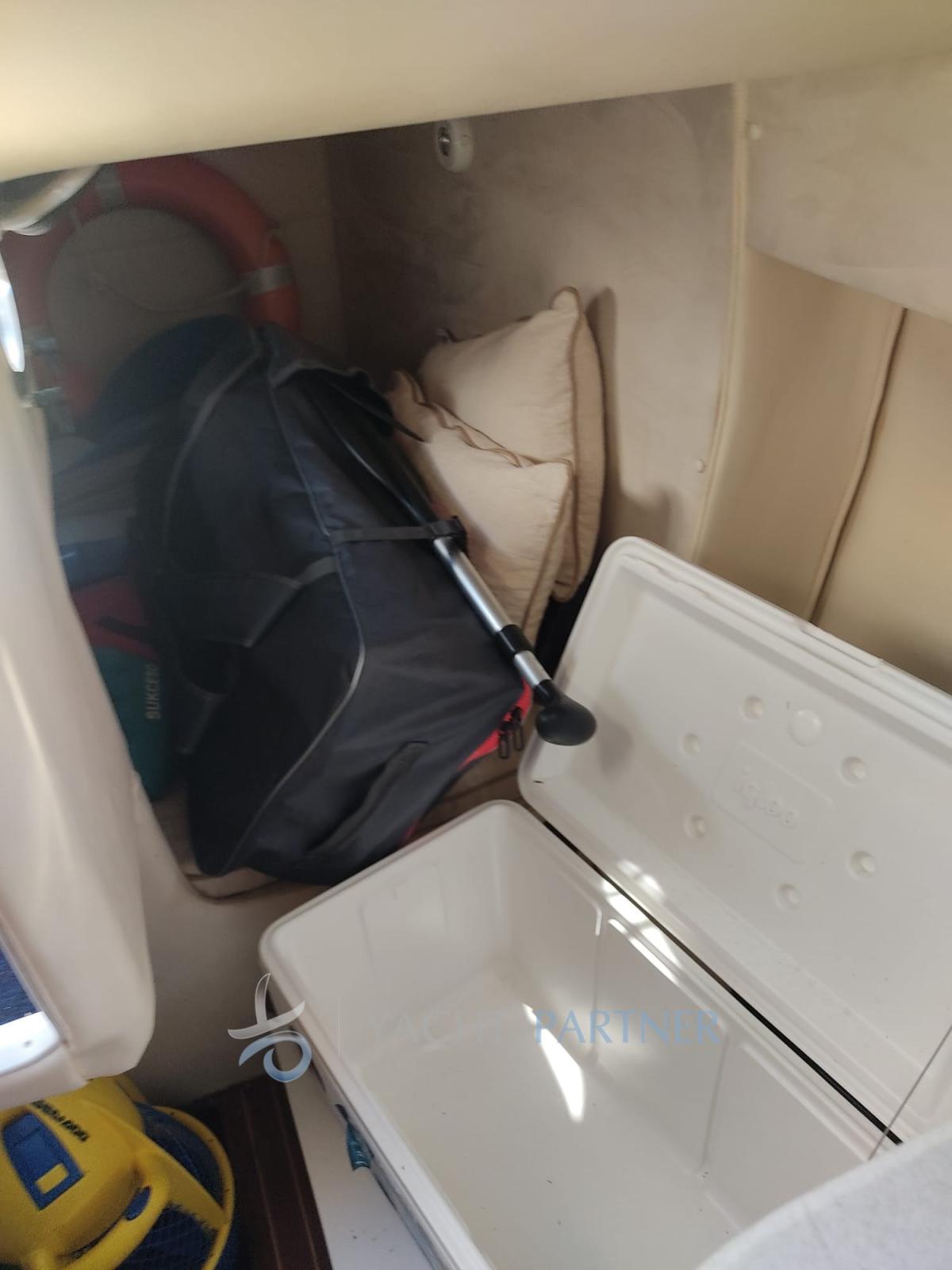 Ancora (Catena in acciaio), Autoclave, 2 Batterie, Doccia esterna, Flap idraulici, Impianto antincendio, Lavandino nel Pozzetto, Luci di cortesia, Luci subacquee, Pozzetto Teak, Presa 220V banchina, Salpa Ancore Elettrico, Scaletta da bagno, Tavolo pozzetto.