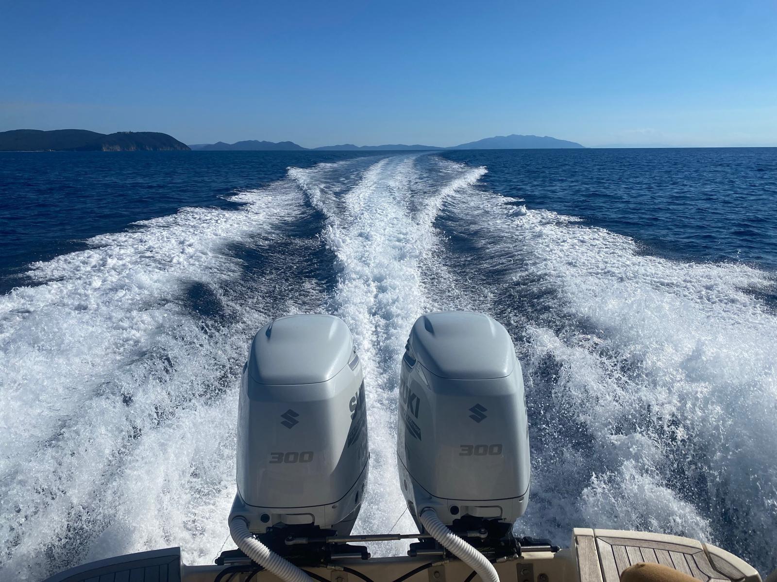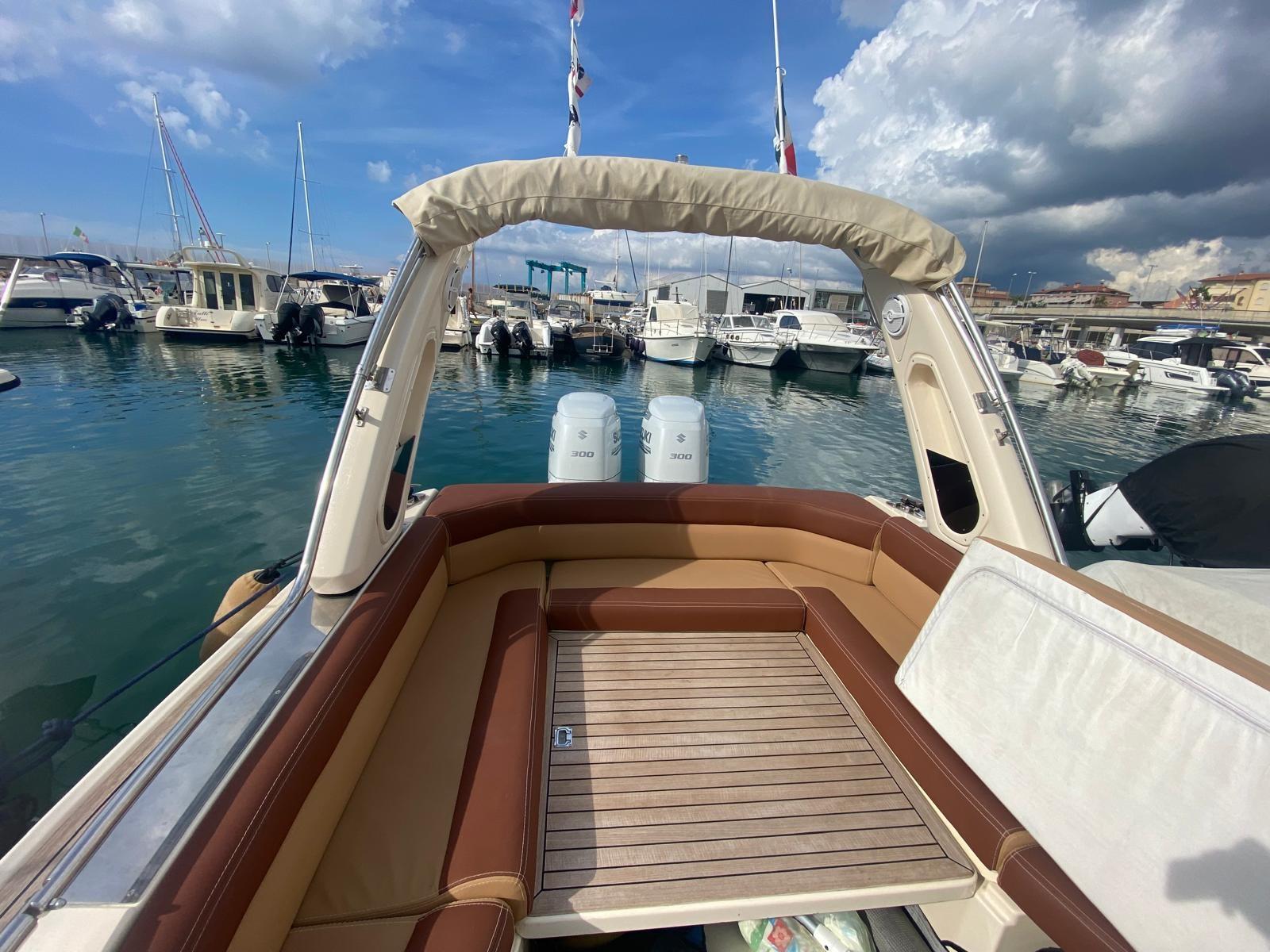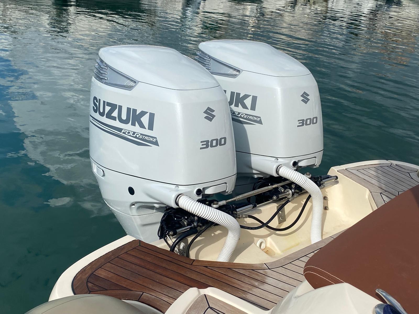 Allarme motore, 4 Batterie (2 motori + 2 servizi), Camminamenti laterali in teak, Doccia esterna, Luci di cortesia, Piattaforma, Pozzetto Teak, Presa 220V banchina, Rollbar (in VTR), Salpa Ancore Elettrico, Scaletta da bagno, Tavolo, Tromba.