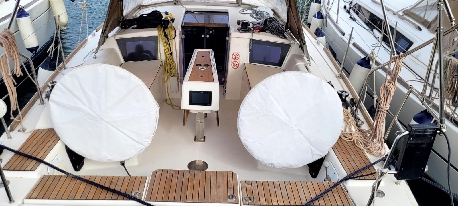 Ancora (DELTA 16 KG Catena: 50 metri), 3 Batterie, Doccia esterna, Piattaforma, Pompa di sentina manuale, Salpa Ancore Elettrico, Scaletta da bagno, Sistema Depurazione acque nere, Tavolo pozzetto, Tender, 3 Winch.
