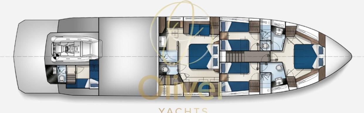 Sali a bordo del 700 per sperimentare la migliore selezione di materiali e opzioni di design degli interni su misura, meticolosamente rifiniti dal migliore e più esperto artigiano Galeon. Il layout del ponte principale prevede due zone separate, con le aree relax e pranzo spostate a prua. Gli ospiti apprezzeranno la privacy delle doppie scale che danno accesso a due zone notte separate al piano inferiore. Ti aspettano quattro cabine e tre bagni, tutti con ampia altezza libera e molto spazio di stivaggio.