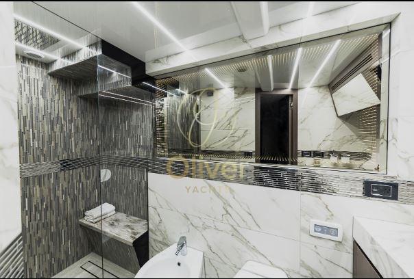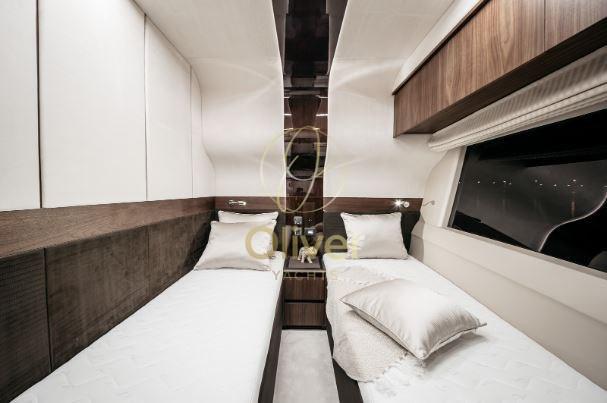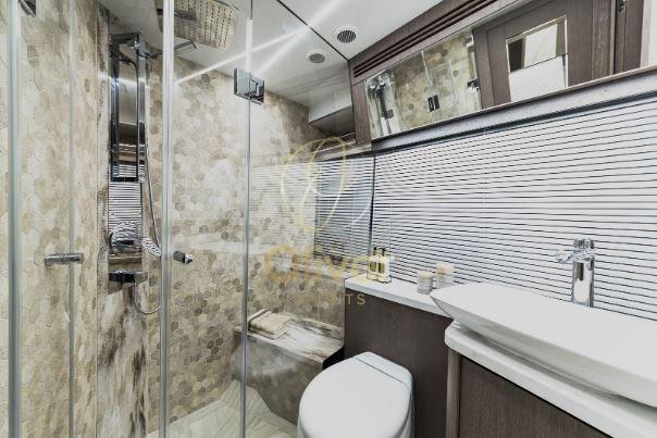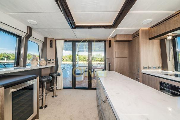 A bordo della 680, i passeggeri troveranno un volume incredibile, un interno luminoso e accogliente e una finitura lussuosa altamente personalizzabile. Un grande salone con un'area dedicata all'intrattenimento e due scale separate che conducono al piano inferiore a quattro cabine per gli ospiti che sono state progettate per garantire comfort e privacy.
