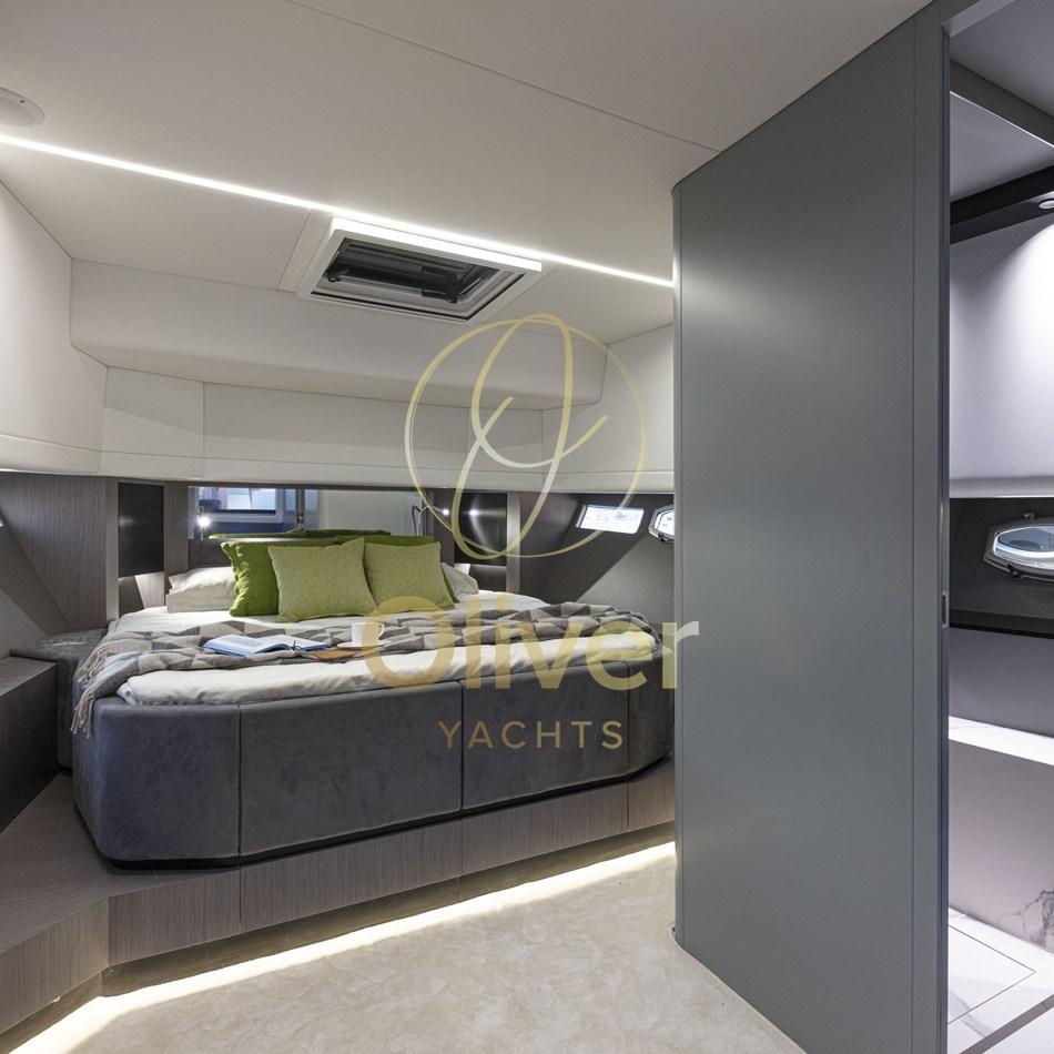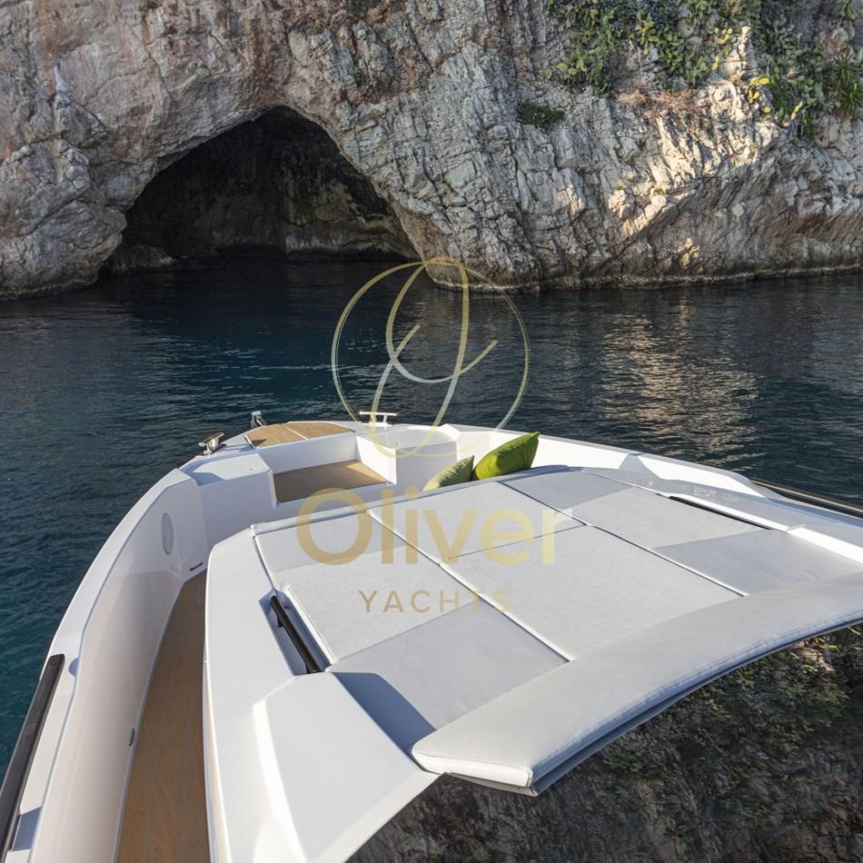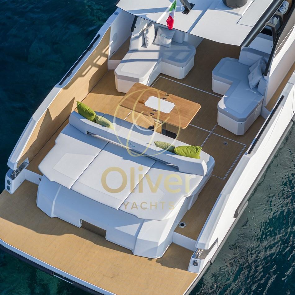 Uno scafo le cui caratteristiche principali rimangono fedeli alla gamma: linea filante e simmetrica, walkaround e central consolle, massimo spazio a bordo grazie a un pozzetto senza limiti e a due terrazze sul mare di importanti dimensioni.