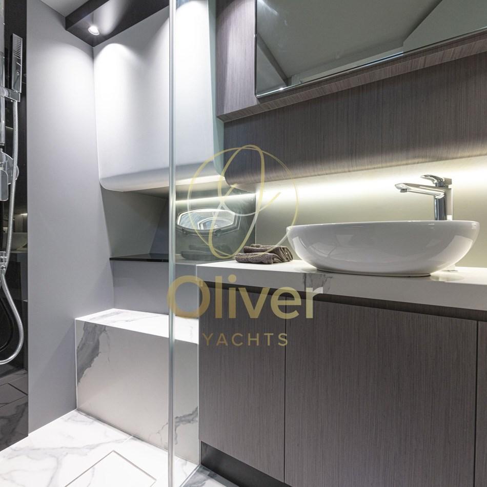 Gli interni luminosi sono rappresentati da un open space multiuso e intelligente. Due cabine, un bagno e una distribuzione degli spazi eccezionale per una imbarcazione di 13 metri.