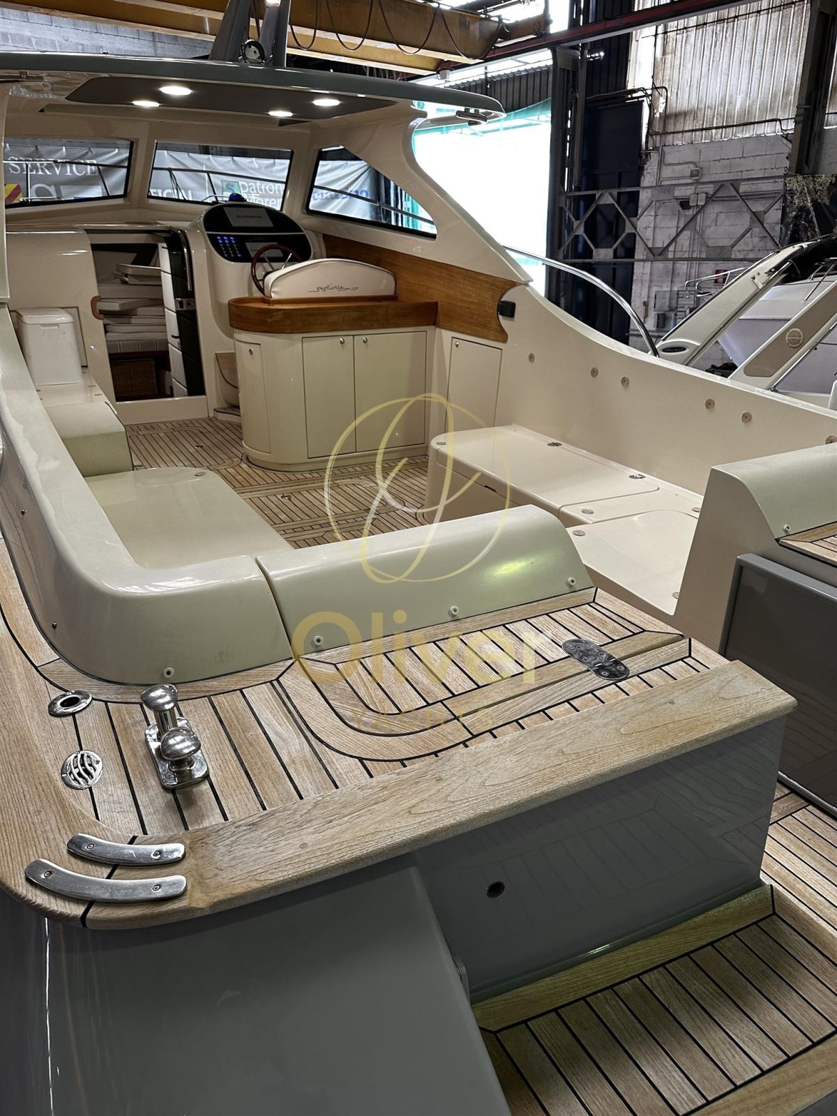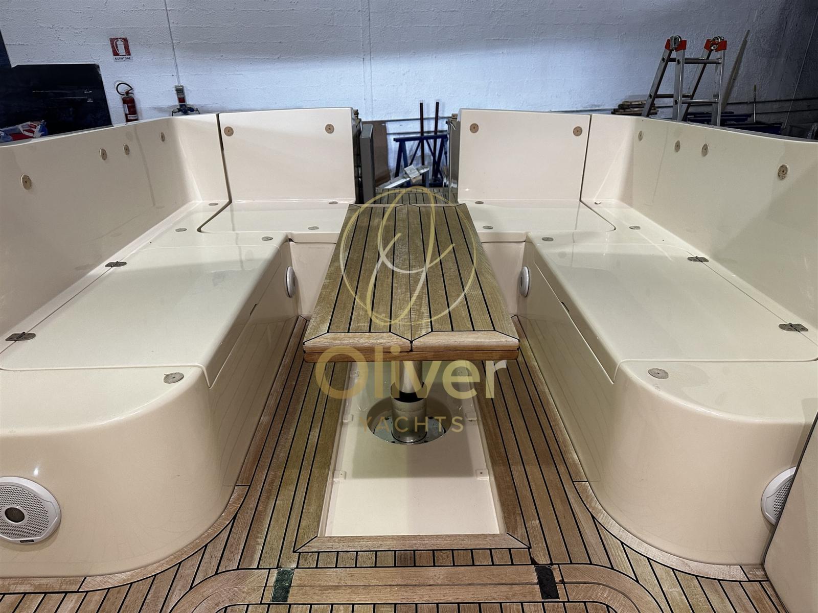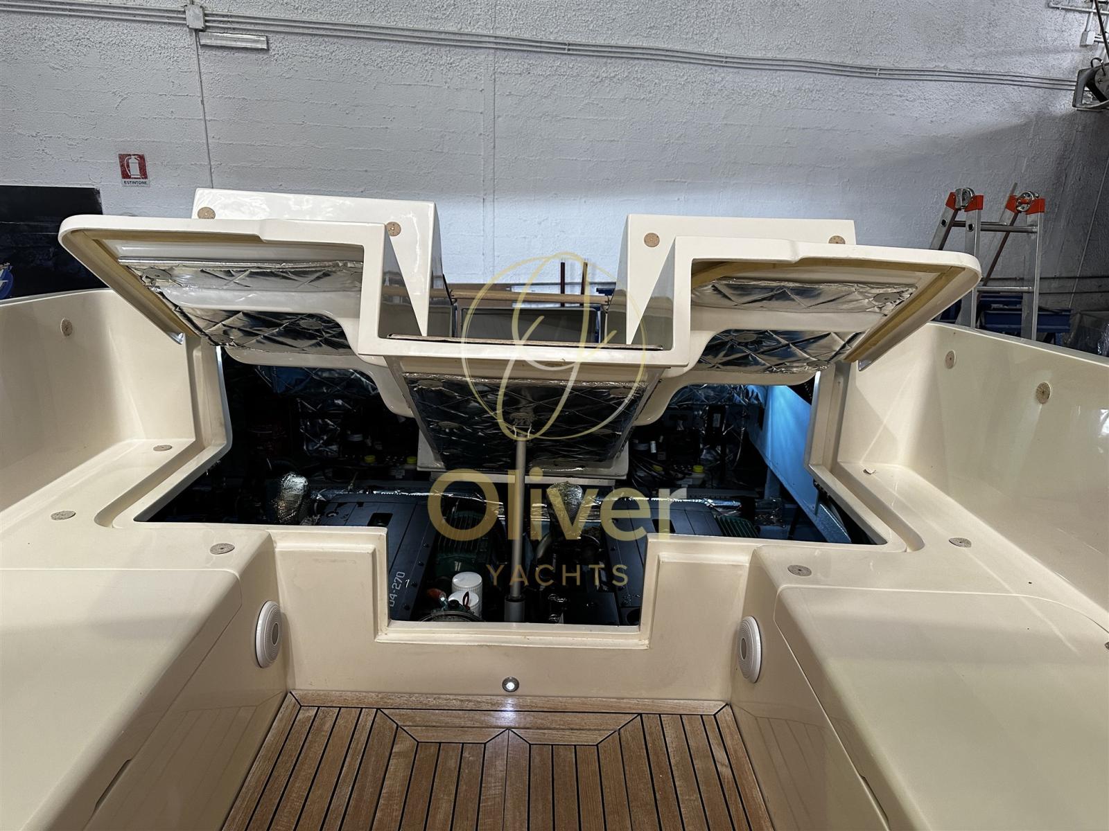 Allarme motore, Allarme sentina, Apertura Vano Motore Elettrica (Sala macchine poppa), Autoclave, Camminamenti laterali in teak (fino a ponte di prua), Doccia esterna, Flap idraulici, Hard top, Impianto antincendio, Indicatori Flaps, Lavandino nel Pozzetto, Luci di cortesia, Passerella (Besenzoni bianca a scomparsa), Pompa di sentina automatica, Pozzetto Teak (Pozzetto completo), Presa 220V banchina, Raddrizzatore, Salpa Ancore Elettrico, Tavolo pozzetto (Elettrico pozzetto di poppa).
