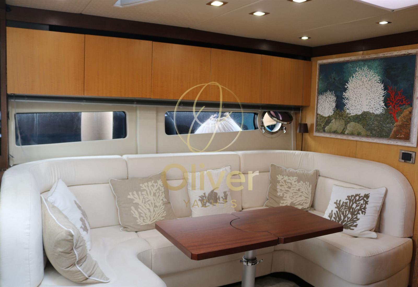 possibilita' di effettuare letto matrimoniale nella cabina di poppa ;contacatena; 2021 NUOVO: tappezzerie interne ed esterne, turbine motori; 2022 NUOVO: telo hard top elettrico, faro telecomandato, TV; riverniciatura scafo banda nel 2023; 2023 motori sbarcati e revisionati, sostituite n.3 macchine aria condizionata, elettronica nuova (plotter pilota e radar); joystik; plancetta poppa idraulica; 2022 faro con telecomando sostituito, sostituito televisore salone, Trim tabs nuovi; telecamera bluetooth; Interni in legno chiaro – finitura satinata; Tavolo in pozzetto; Impianto stereo Fusion montato nuovo nel 2024 con 6 altoparlanti; commissione per intermediazione del 5% +IVA 22% a carico dell'acquirente (IVA si calcola solamente sull' importo della commissione)