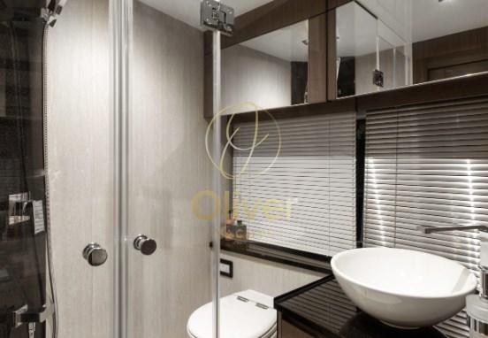 Allarme motore, Allarme sentina, Apertura Vano Motore Elettrica, Auto Dynamic Trim Interceptor, Autoclave, Auto-Trim, Bitte Abbattibili, Bocche di Lupa, Camminamenti laterali in teak (opzionale), Canvas Wing (zipwake), Colorazione speciale (vari gelcoat), Doccia esterna, Doppia timoneria, Elica di poppa - stern thruster (opzionale), Fari fissi a poppa, Flap idraulici, Garage per tender, Gruette per tender, Hard top (Hard Top in carbonio al fine di mantenere il baricentro basso e aumentare la stabilità), Impianto antincendio, Indicatori Flaps, Lavandino nel Pozzetto, Luci di cortesia, Luci subacquee (opzionale), Passerella (opzionale), Piattaforma (in teak, opzionale sistema idraulico per la plancetta sommergibile), Pompa di sentina automatica, Pompa di sentina manuale, Porta ingresso, Porta laterale, Pozzetto Teak (opzionale), Presa 220V banchina, Presa acqua banchina, Ripetitore strumentazione, Salpa Ancore Elettrico, Scaletta da bagno, Sistema Depurazione acque nere, Stabilizzatori (Seakeeper 8 opzionale Zipwake di serie), Tavolo pozzetto (a scomparsa), Tavolo Salone Abbattibile, Tientibene con cancelletti, Tromba, Tuga in teak (opzionale), Winch tonneggio di poppa, Winch tonneggio di prua.