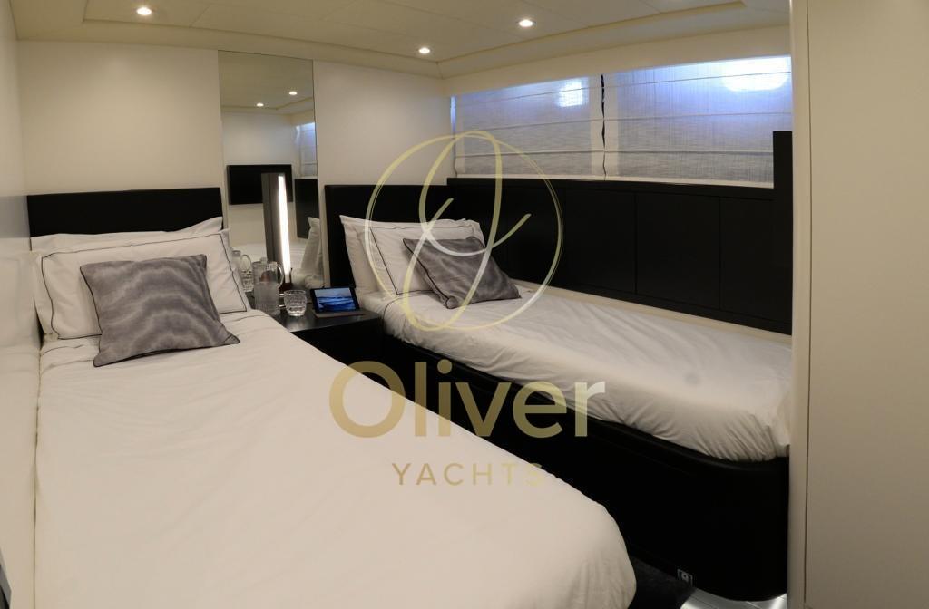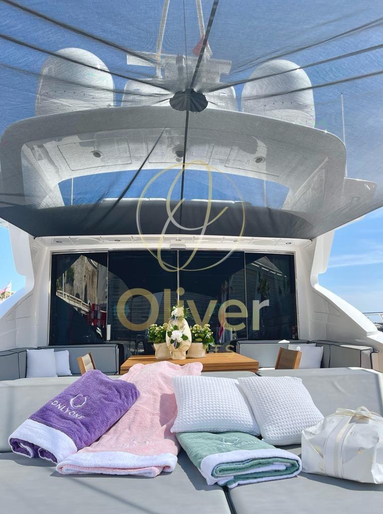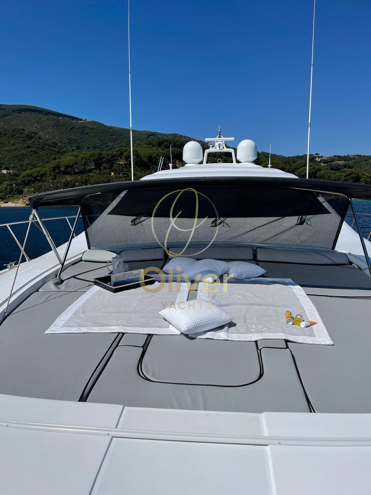Commercial - Refitting totale effettuato nel cantiere Overmarine nel 2018 (riverniciatura totale, smontaggio di tutto il mobilio interno per riverniciatura e modifica nel salone, rifatti i bagni, sostituite tutte le pompe, elettronica nuova, tutta l'impiantistica audio video sostituita, tagliando delle 1.000 ore, illuminazione tutta a led, rigommato il teak esterno, revisione decennale idrogetti) - Set cuscini 2020 - Idrogetti Kamewa - Un generatore nuovo 2021 - Wi-fi Starlink 2024 - Pavimento salone riverniciato 2024