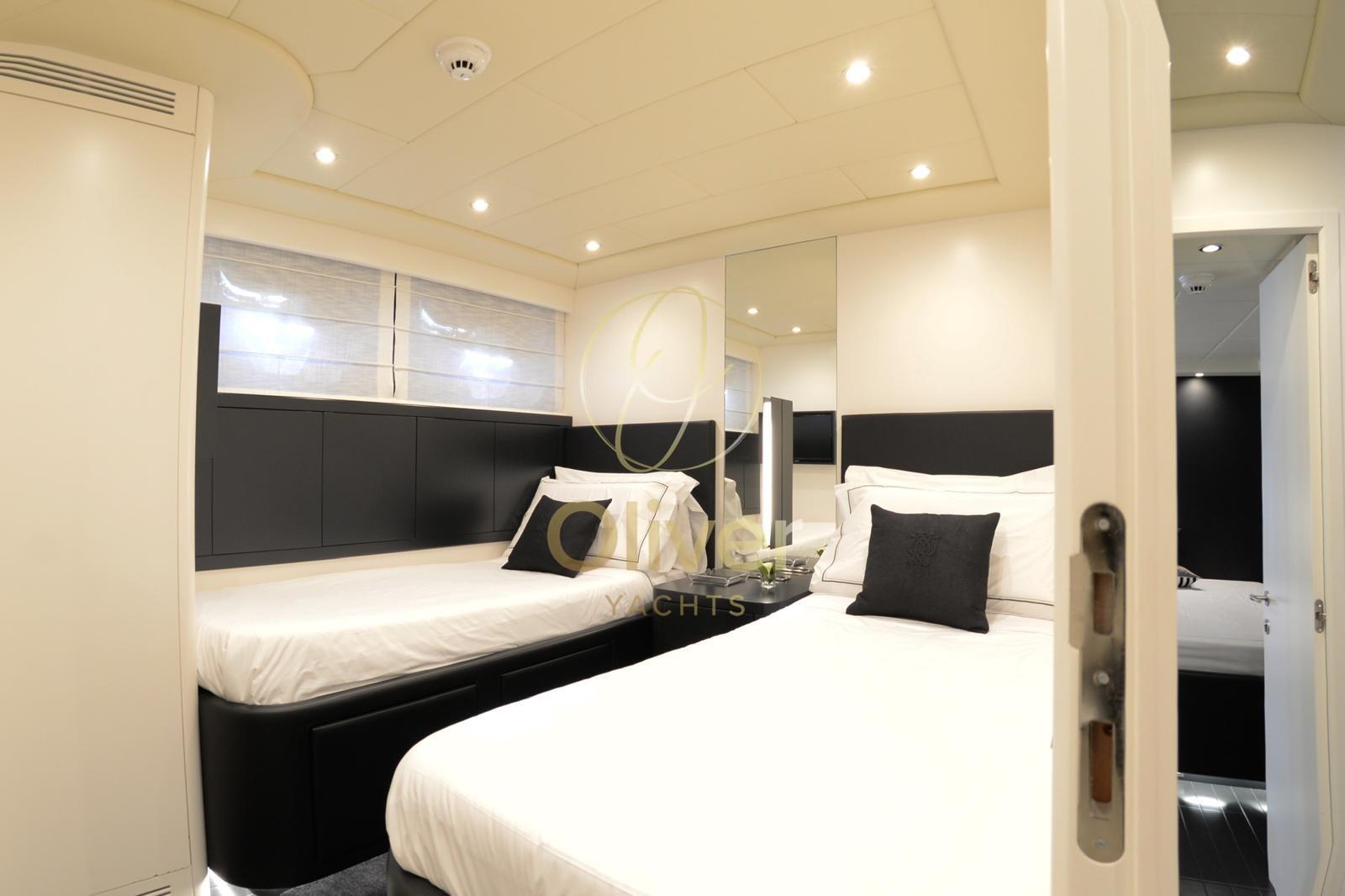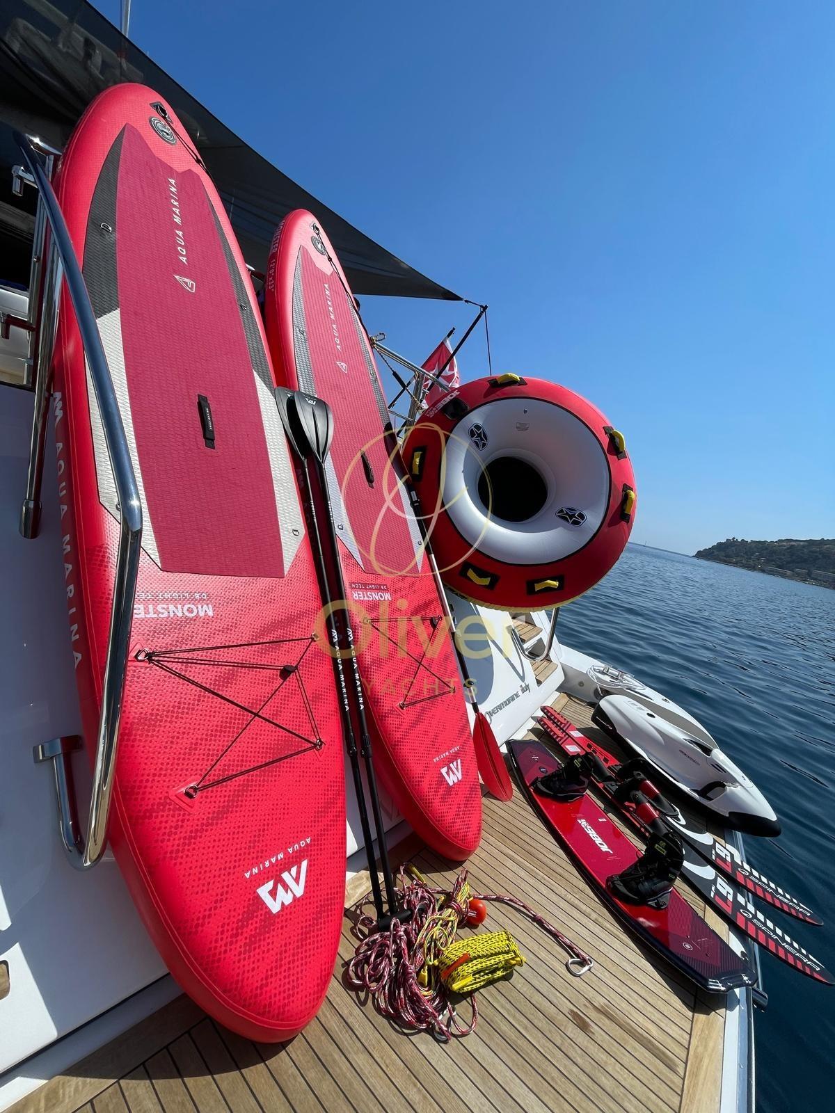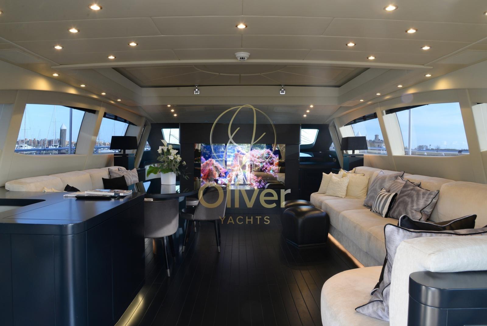 Commercial - Refitting totale effettuato nel cantiere Overmarine nel 2018 (riverniciatura totale, smontaggio di tutto il mobilio interno per riverniciatura e modifica nel salone, rifatti i bagni, sostituite tutte le pompe, elettronica nuova, tutta l'impiantistica audio video sostituita, tagliando delle 1.000 ore, illuminazione tutta a led, rigommato il teak esterno, revisione decennale idrogetti) - Set cuscini 2020 - Idrogetti Kamewa - Un generatore nuovo 2021 - Wi-fi Starlink 2024 - Pavimento salone riverniciato 2024