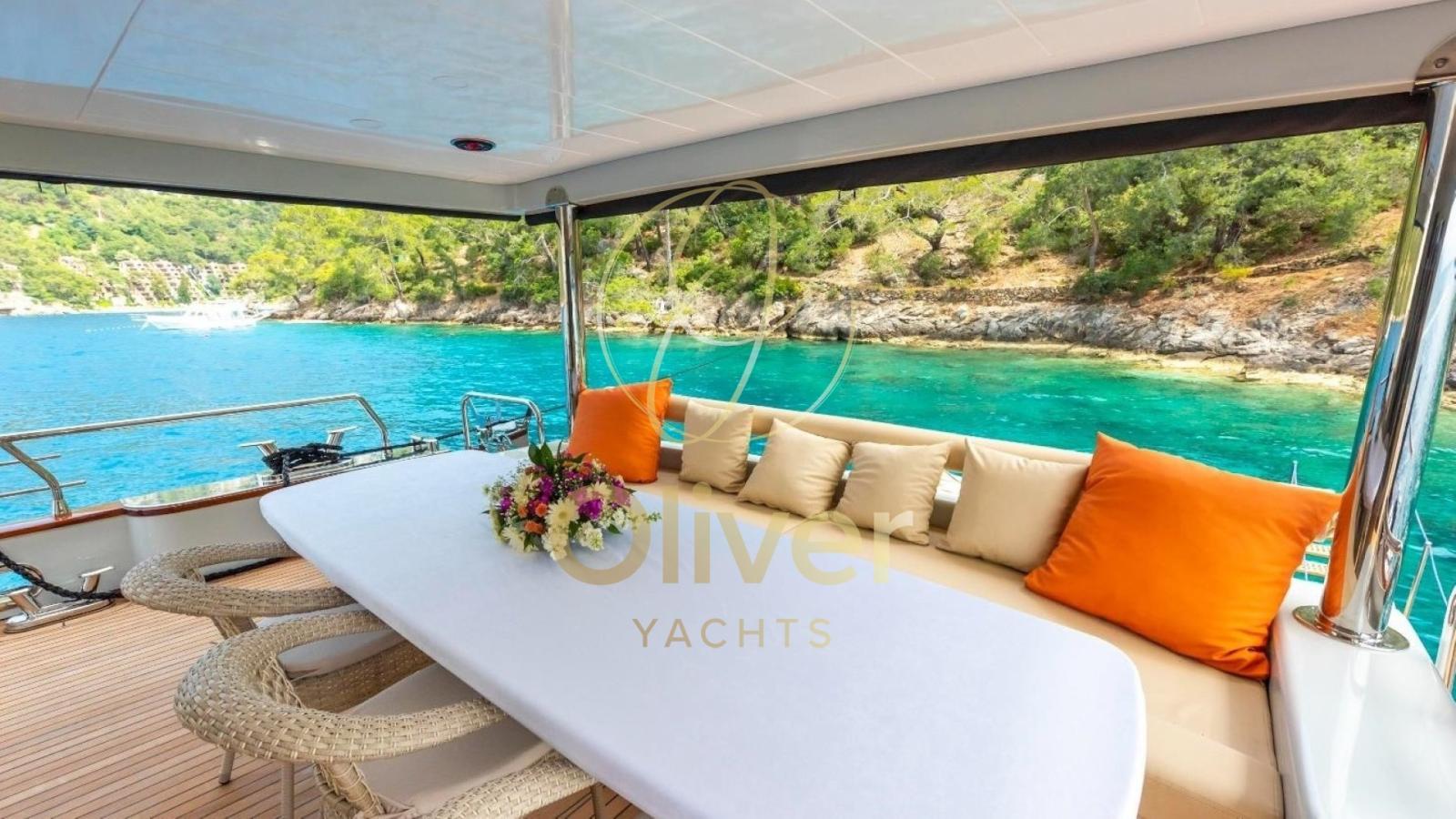 Gli interni di questo yacht rappresentano un perfetto equilibrio tra lusso moderno e un’atmosfera accogliente. Curati nei minimi dettagli, sono caratterizzati da un design elegante con l’uso predominante di materiali naturali come il legno pregiato, che conferisce calore e raffinatezza a tutti gli ambienti. Ogni elemento è stato progettato per offrire il massimo comfort e funzionalità agli ospiti.