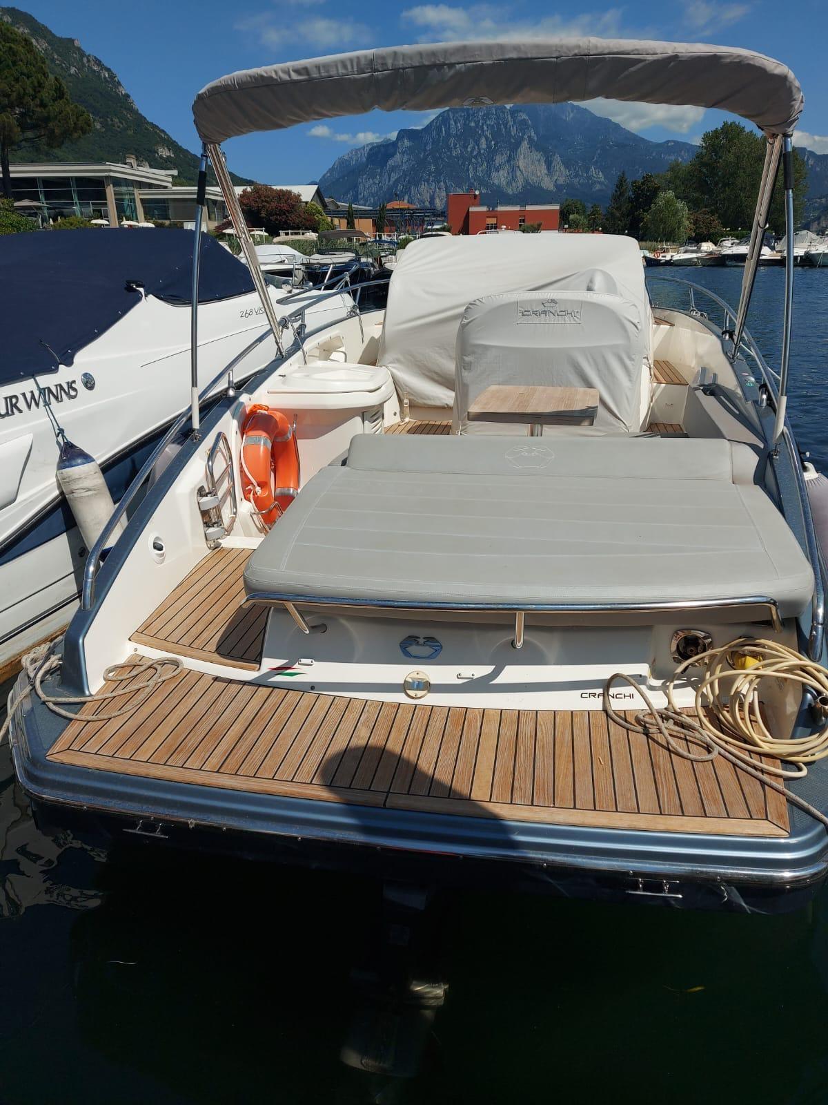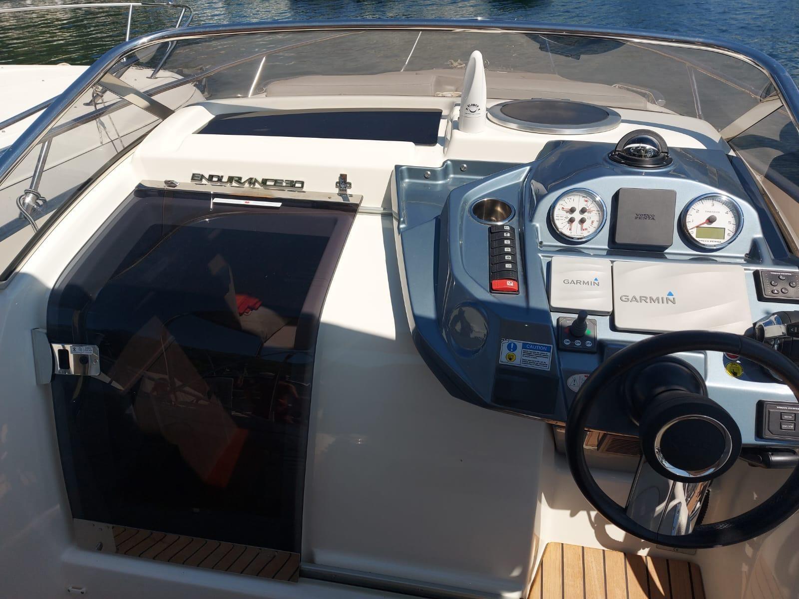 ENDURANCE 30 E30, CRANCHI costruzione 2019, MODELLO 2020 numero 8 persone trasportabili SET BAR CON LAVELLO, TAGLIERE E FRIGORIFERO, MICROONDE numero 1 cabina + 1 cuccetta BENZINA, 4 TEMPI, ENTROFUORIBORDO VOLVO PENTA V8-350 CE – R / DP , 1 x 350 CV / 261 kW A 5800 GIRI/MIN , 5300 CM3, 38 CV FISCALI MOTORE NUOVO 2024 velocità di crociera 25 NODI e velocità max 35 NODI elettronica presente vhf gps eco, cartografico inverter aria condizionata dotazioni di bordo in corso di validità giubbetti, fuochi e razzi, anulare N. 3 batterie, 2023, 30 mt catena, con salpa ancora elettrico boiler ELETTRICO 70 lt acqua 326 lt carburante stato d'uso della cuscineria e della tappezzeria BUONO Optional: verniciatura scafo grigio nube, elica di prua, GPS, serbatoio acque nere, Bimini top, copertura set console e pilota, cuscino prendisole, forno microonde con mobile, frigo pozzetto, impianto elettrico 230 V con cavo banchina, boiler elettrico, doccetta poppa con acqua calda, mobile armadio con anta, parabordi e copriparabordi Cranchi, tavolo interno trasformabile in letto, tavolo pozzetto, teak rivesto pozzetto, verricello con catena 30 mt, ancora 12 kg Ultramarine, tappezzeria esterna in Silvertex, dotazioni di bordo complete.