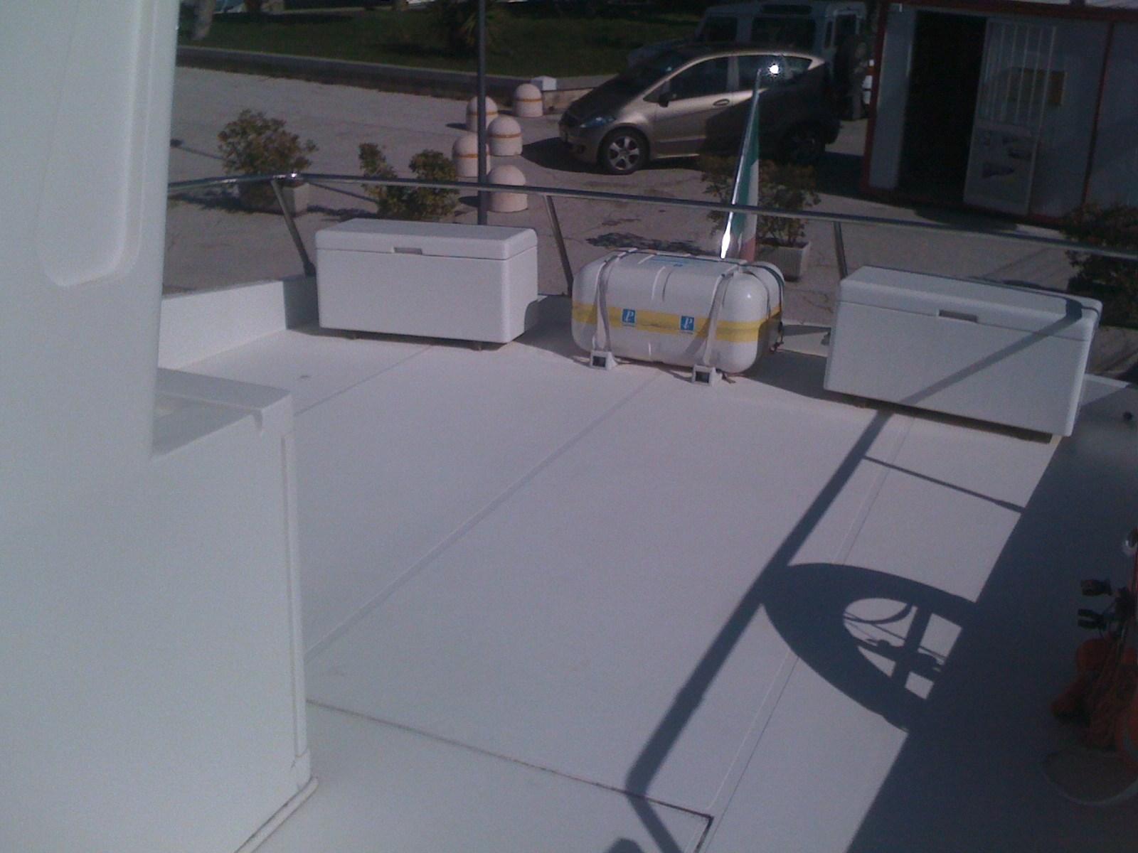 Autoclave, Camminamenti laterali in teak, Doccia esterna, Doppia timoneria, Flap idraulici (N°2), Passerella (IDRAULICA), Piattaforma, Pompa di sentina automatica, Pozzetto Teak, Presa 220V banchina, Raddrizzatore, Salpa Ancore Elettrico, Scaletta da bagno, Winch tonneggio di prua.