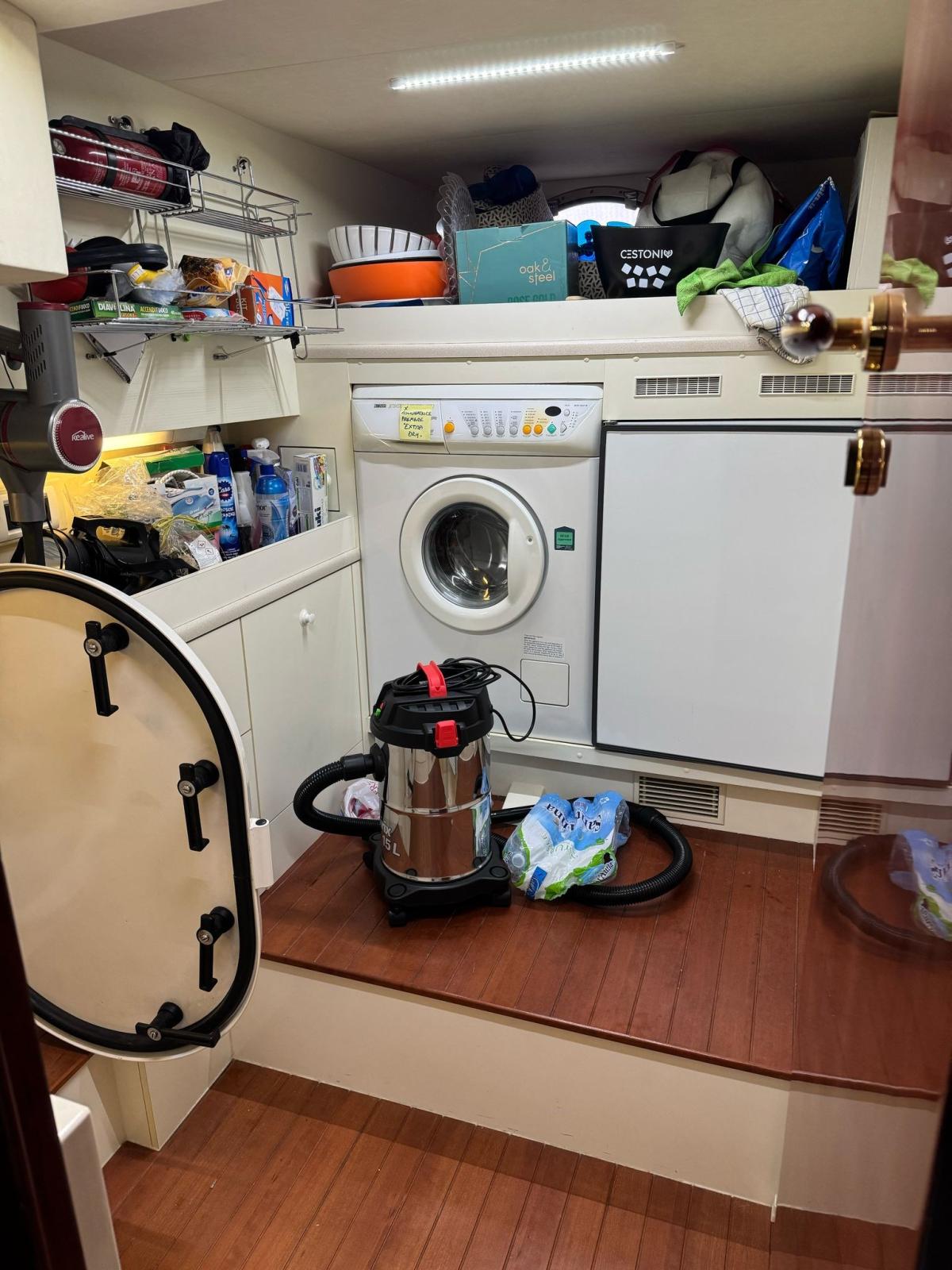 - Locale cambusa (con accesso dalla cucina) munita di congelatore, lavasciuga e porta di accesso alla sala macchine