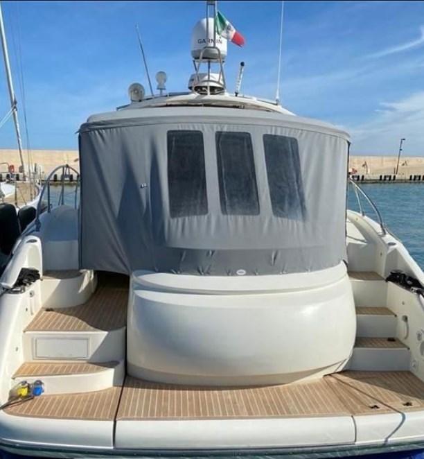 Allarme motore, Allarme sentina, Autoclave, Colorazione speciale (Blue), Doccia esterna, Flap idraulici, Hard top, Impianto antincendio, Indicatori Flaps, Luci di cortesia, Luci subacquee, Passerella (idraulica), Pompa di sentina manuale, Pozzetto Teak, Presa 220V banchina, Salpa Ancore Elettrico, Scaletta da bagno, Tavolo pozzetto, Tavolo Salone Abbattibile, Winch tonneggio di poppa.