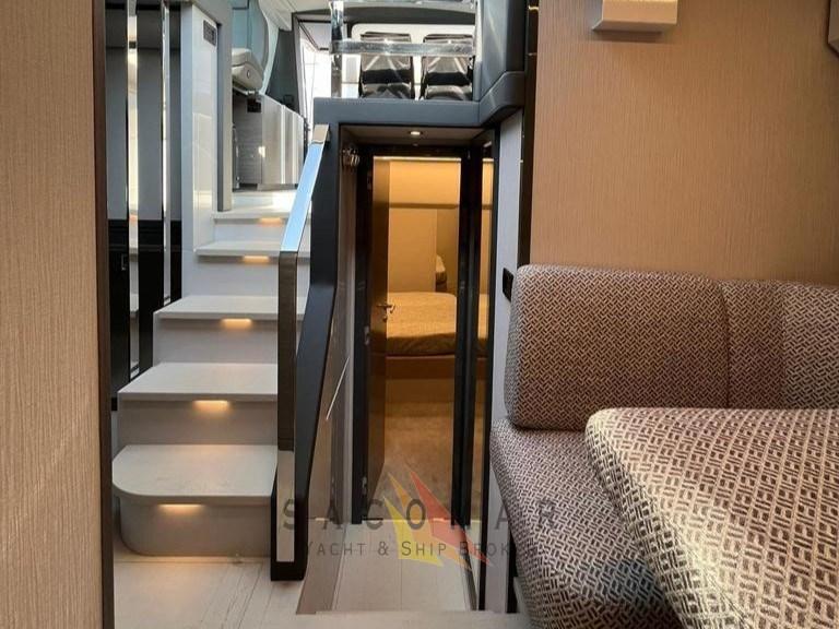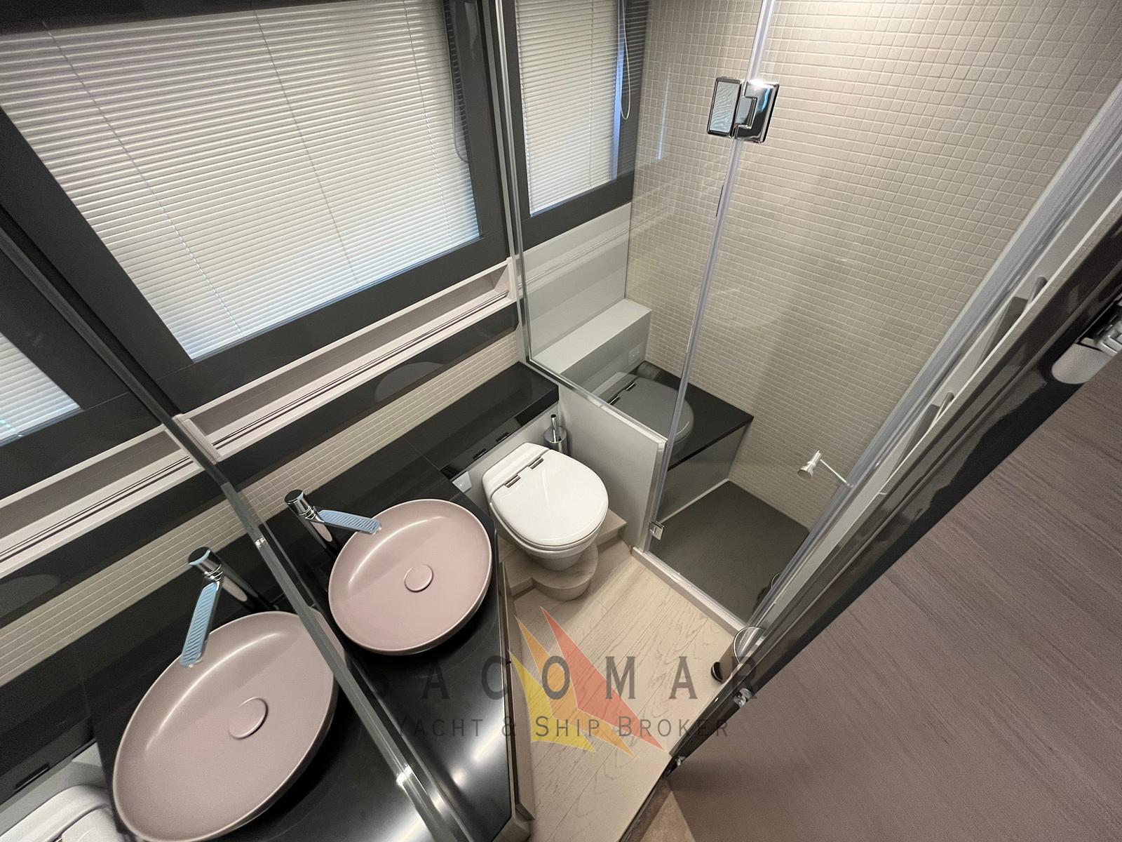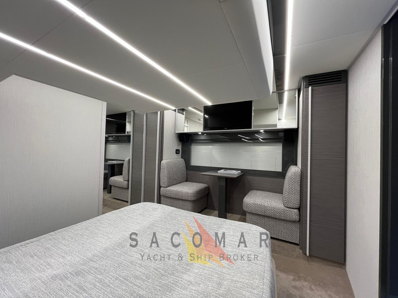TV Led 32" in salone superiore con movimentazione assistita, TV 28" in cabina VIP, Harman Kardon system in salone e in cabina armatore