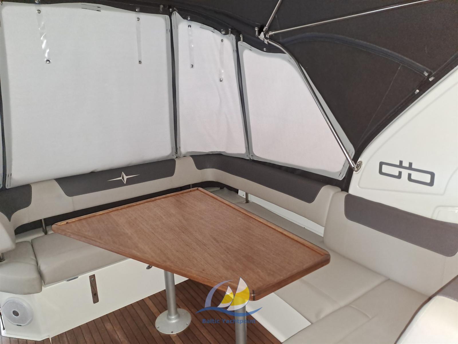 Allarme motore, Allarme sentina, Apertura Vano Motore Elettrica, Auto Dynamic Trim Interceptor, Autoclave, 4 Batterie, Camminamenti laterali in teak, Doccia esterna, Impianto antincendio, Lavandino nel Pozzetto, Luci di cortesia, Piattaforma, Pompa di sentina manuale, Porta ingresso, Presa 220V banchina, Salpa Ancore Elettrico, Scaletta da bagno, Tavolo pozzetto, Tromba.