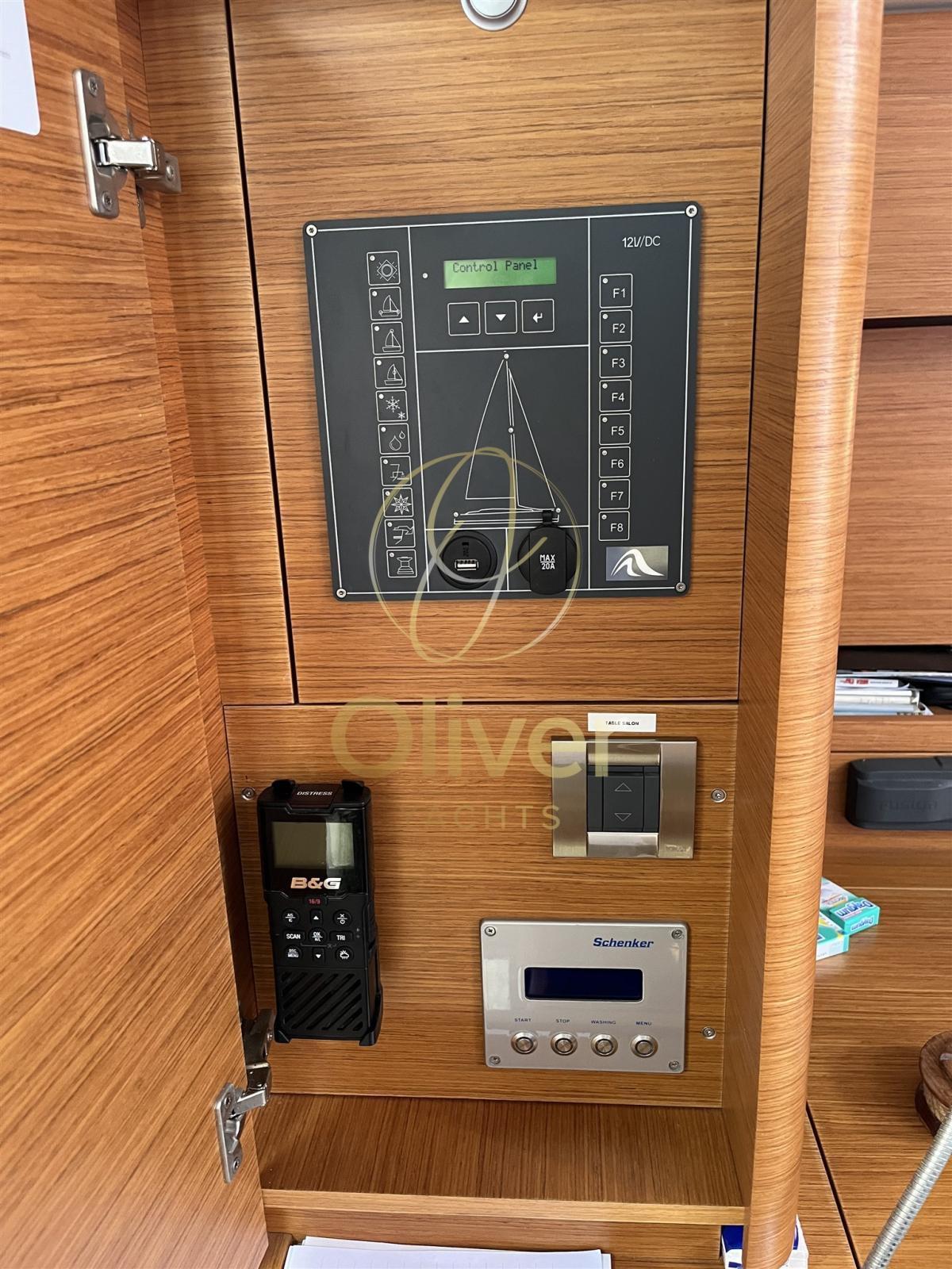 AIS, Angolo barra, 2 Bussola, Comando motori elettronico, Contametri catena, Radio VHF (DSC Wy Fi), Stazione vento (B & G).