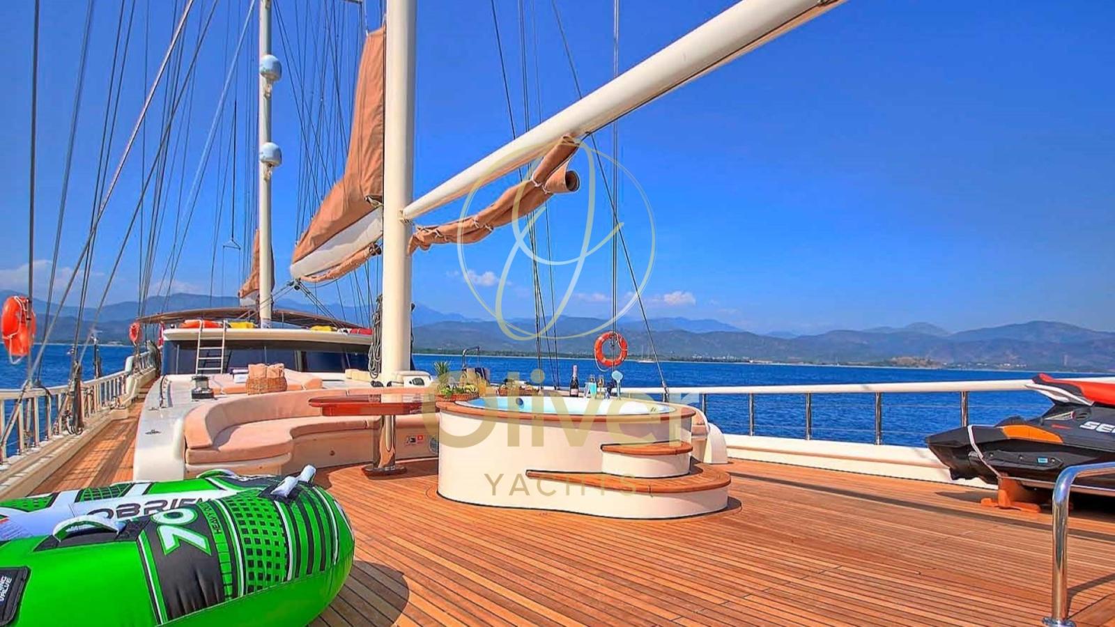 Spinta da due motori Volvo da 600 HP e dotata di un sistema velico completo, questa goletta offre un’esperienza di navigazione fluida e affidabile. L’attenzione ai dettagli e la qualità costruttiva la rendono una scelta ideale per chi cerca un’imbarcazione esclusiva, perfetta per lunghe traversate e momenti di puro lusso in mare. Per gli amanti degli sport acquatici, la goletta offre una varietà di attrezzature: Canoa Singola ,Stand Up Paddleboard, Wakeboard, atrezzatura pesca.