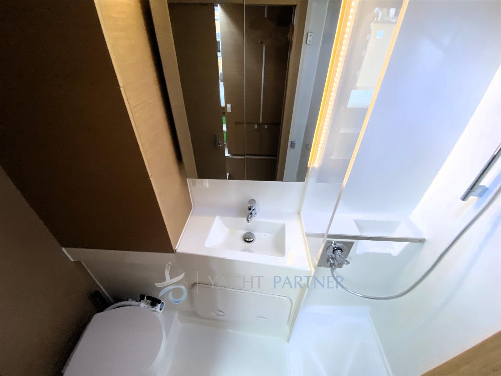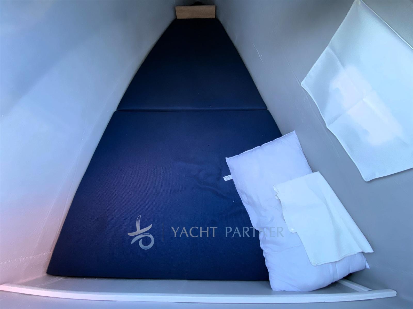 Cuscinerie complete interne ed esterne, cuscini prendisole su rete di prua ; Ventilatori in ogni cabina, zanzariere e oscuranti ; Boiler acqua calda, 2 WC marini manuali, pavimenti in teak sintetico ; Impianto stereo Fusion Apollo RA670 con 4 altoparlanti (2 in salone + 2 in pozzetto) ; Luci di cortesia LED nel pozzetto, supporto tablet con charger station ; Frigorifero supplementare 55 L, serbatoio acqua aggiuntivo, armadietti extra in dinette