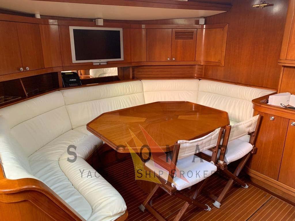 Aria condizionata in ogni cabina - tv a poppa e in salone - trasduttori di velocità e profondità con 2 display nel pozzetto e 1 sul tavolo da carteggio - VHF sul tavolo da carteggio con unità portatile in pozzetto –