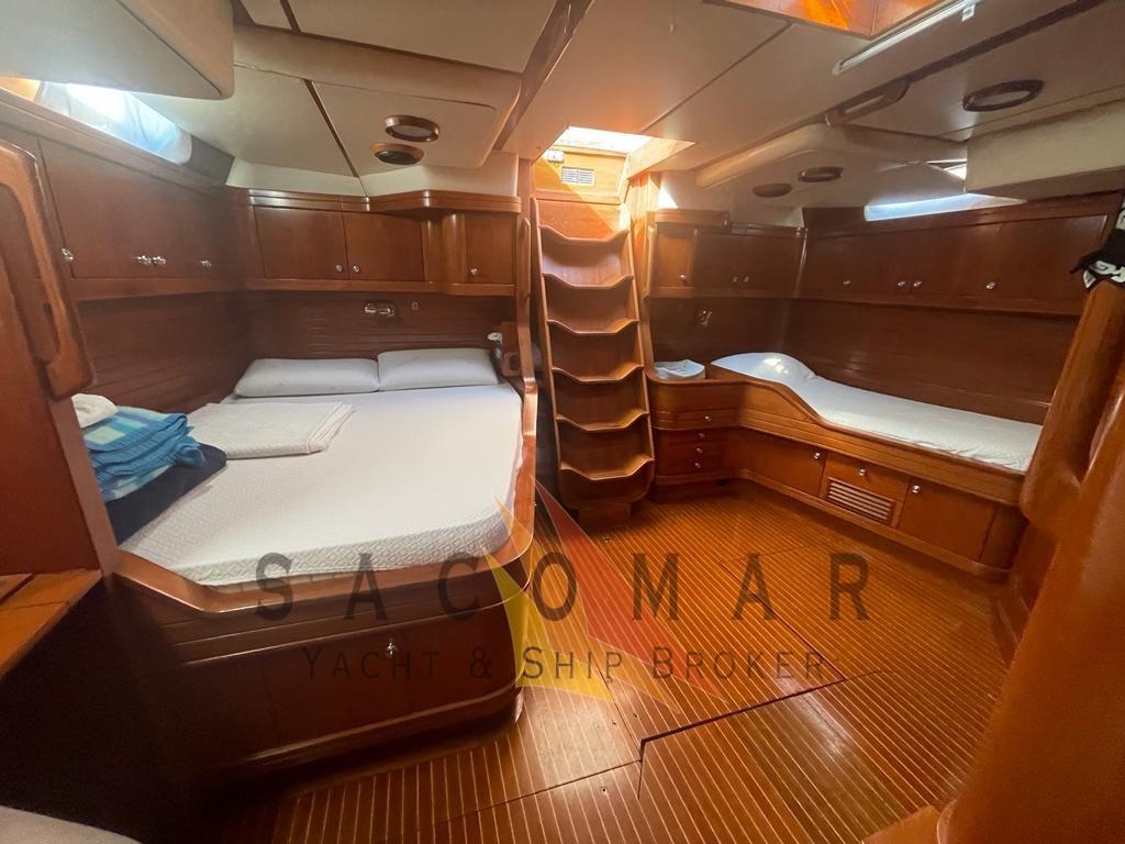 sistema di climatizzazione Condaria 220VAC a ciclo inverso con uscita 70.000 BTU (revisionato nel 2017) - Attrezzatura di coperta Rondal e Harken - Sartiame controllato e tagliandato a giugno 2017 -Back up manuale per tutti i sistemi idraulici - pennoni e longheroni Rondal in lega di alluminio verniciati di bianco nel 2006 - Sistema di avvolgifiocco interno - Avvolgifiocco idraulico Rondal per strallo e stralli interni - Sistema di avvolgifiocco sull'albero - Tensioni idrauliche del paterazzo Navtec e vang del boma revisionati maggio 2017- Rig in testa d'albero con gradini sul ponte e 3 set di crocette