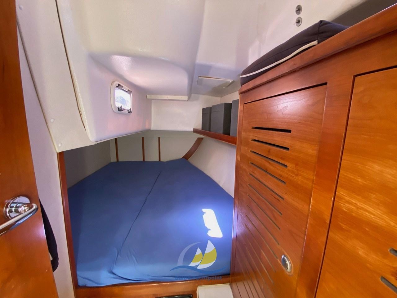 Lo yacht offre due cabine e un'ulteriore cabina singola che può essere utilizzata come spazioso gavone per biciclette, vele, gommone o attrezzatura da SUP.
