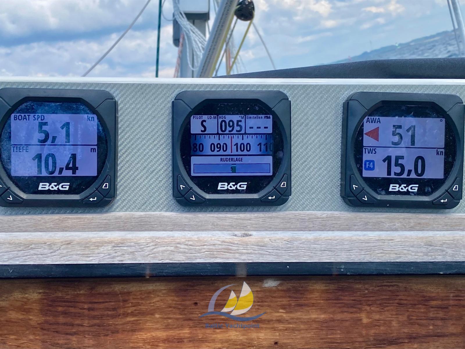 Lo yacht è stato completamente attrezzato, sottoposto a regolare manutenzione ed è in ottime condizioni. È ideale per i velisti ambiziosi che apprezzano la velocità, il comfort e la funzionalità. Grazie ai comandi ben congegnati, è facilmente adatto per l'uso con una sola mano: tutte le vele, compresi i gennaker, possono essere azionate dal pozzetto. Un autopilota B&G di alta qualità garantisce un controllo preciso.
