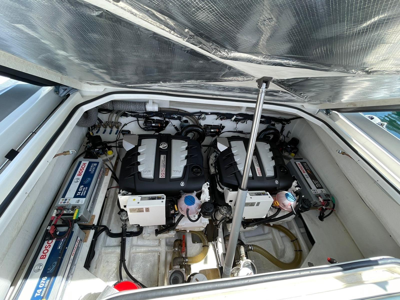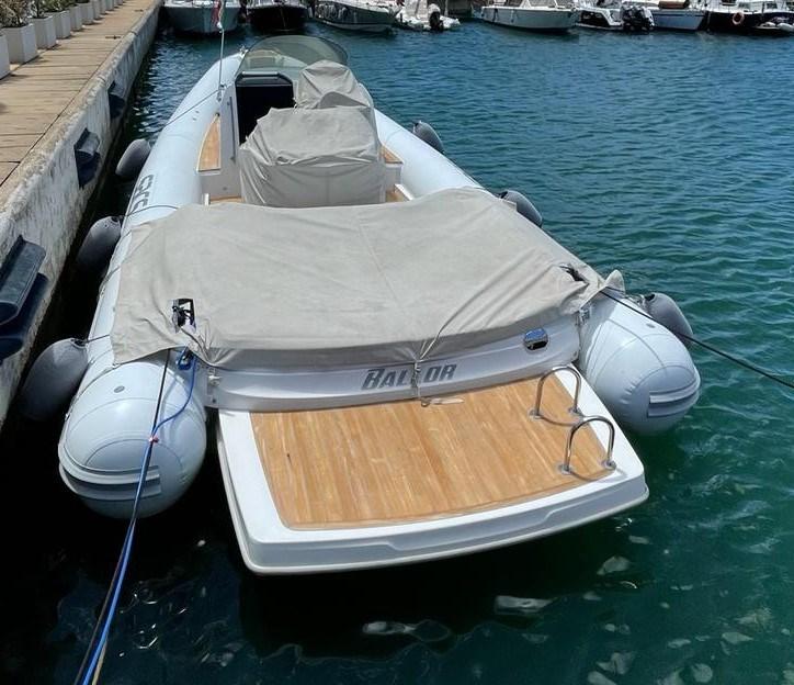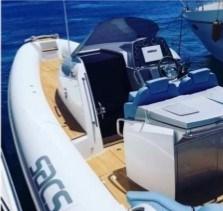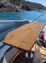 bitte ormeggio, verricello elettrico, luci navigazione a led, gonfiatore elettrico, musone in VTR con gradino in teak, vano tecnico di poppa ad apertura elettrica, bracket con plancette integrate e rivestimento in teak (Outboard), pozzeto con mobile stand-up con tientibene, lavello e tagliere in corian, volante Zulag Isotta, sistema digitale di gestione utenze con interruttori antivandalo, doppia poltrona di guida con cuscino stand-up, cuscinere interne cabina, oblò laterali, impianto carburante con prefiltri e serbatoio, impianto acque nere con serbatoio e pompa maceratrice, impianto acqua dolce con autoclave e serbatoio, impianto estintore kg. 6 completo, scaldabagno elettrico, divani e prendisole a poppa