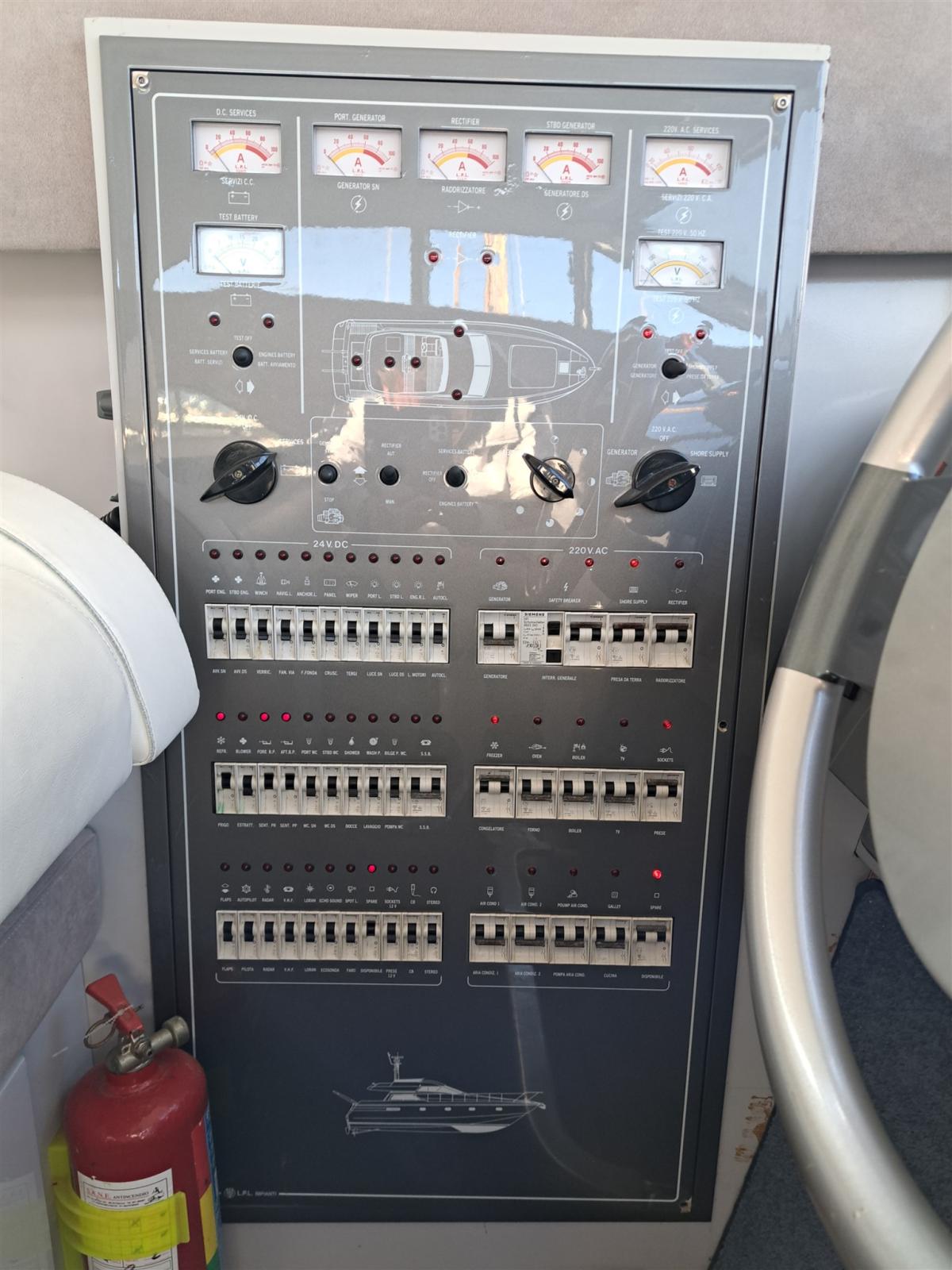 Autoclave, 7 Batterie, Doccia esterna, Doppia timoneria, Flap idraulici, Passerella (idraulica), Piattaforma, Pompa di sentina automatica, Pozzetto Teak, Presa 220V banchina, Raddrizzatore, Rollbar, Salpa Ancore Elettrico, Scaletta da bagno, Winch (di poppa).