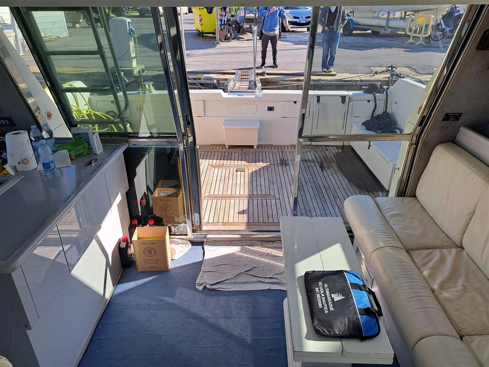 Mochi 46 del 1992 con due MAN da 680hp con 535 ore moto. Allestimento con cabina matrimoniale, due cabine doppie in piano, due bagni , cabina marinaio con bagno, cucina con lavastoviglie. Ampia dinette. Aria condizionata e riscaldamento. Generatore . lavatrice, pilota raymarine, geonav cartografico GPS ,VHF , elica di prua. 2022 motori sbarcati Equipaggiamento di navigazione: Ecoscandaglio (da revisionare) - Gps – Bussola magnetica - Plotter – Radio VHF – bow thruster. Equipaggiamento interno ed esterno: Ancora + Catena – salpa ancore – autogonfiabile – cuscineria esterna – passerella idraulica – Dotazioni entro le 50 miglia e due zattere (scadenza 2025) – Pozzetto in teak – tavolo a scomparsa in pozzetto – Generatore Onan – Passerella Idraulica – Frigo casalingo – Elica di prua – Cuscineria e tendalini completi – Tender fuoribordo – Lavastoviglie – Lavatrice – Doccia esterna – Doppia timoneria – Elica di prua – Flap idraulici – Impianto antincendio – Indicatori Flaps – Luci di cortesia – Passerella (Idraulica) – Piattaforma – Pompa di sentina automatica – Pompa di sentina manuale – Pozzetto Teak – Presa 220V banchina – Raddrizzatore – Batterie motori, servizi e generatore nuove (novembre 2024) -Salpa Ancore Elettrico – Scaletta da bagno – Tromba – Winch tonneggio di poppa – Winch tonneggio di prua. Impianto acque nere – Prese interne 12v – Prese interne 220v – 2 WC marino elettrico – Altoparlanti – Stereo TV – Copripozzetto – Cuscineria completa – Cuscineria di poppa – Cuscineria fly – Cuscineria Pozzetto, Teli copri finestra, Telo Copertura Fly, Telo copriconsolle, Telo coprisedile, Tendalino. Dotazioni di sicurezza, zattere, cime, parabordi ed equipaggiamento di rispetto incluso. Lista lavori 2022: Imbarcazione con motori sbarcati - Rifacimento di quasi tutta l'impiantistica di bordo. Invertitori rifatti, nuovo impianto antincendio in sala macchine, prese a mare nuove, autoclave nuova, tutte le pompe di bordo sono state revisionate, lucidatura carena, pulizia serbatoi. Rifacimento antivegetativa con prodotto international, 2 mani - Sostituzione zinchi elettrolitici - Lucidatura totale imbarcazione compresi gli acciai - Verniciatura delle parti grigie della tuga - Rifacimento paioli panche pozzetto, gommatura pozzetto - Riverniciatura roll-bar e ritocchi degli accessori su montati, Realizzazione musone di prua e montaggio - Pulizia catena e segnaletica indicativa - Pulizia sentina motori e gavone alloggiamento catena ancora - Verniciatura sentina motori e gavone alloggiamento catena ancora - Sistemazione bottazzo mediante applicazione di adesivo - Rifacimento bicchierini supporti tender (2) - Rifacimento tavolo - Pulizia e igienizzazione interna da ditta specialistica.