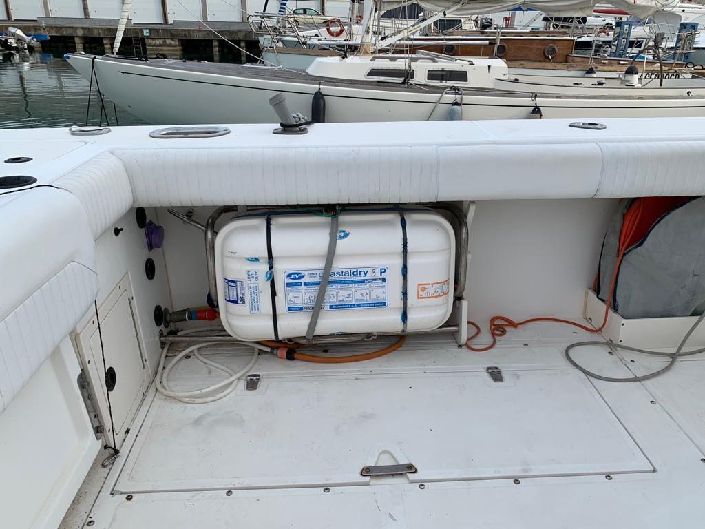 Antenna radar, Ecoscandaglio (con trasduttore passante da Kw 1), GPS (Raymarine), 2 Plotter (Raymarine Axiom 9 + Axiom 7), Sedile Copilota.
