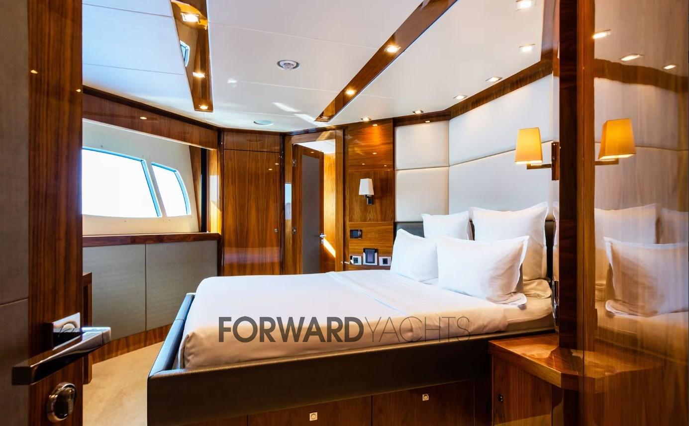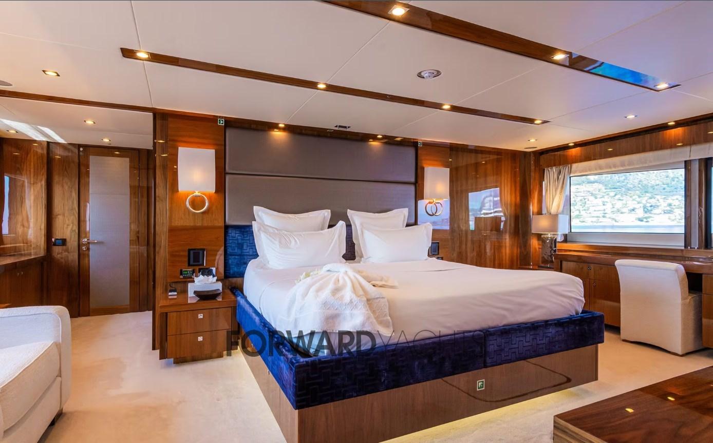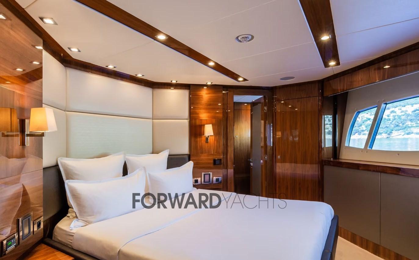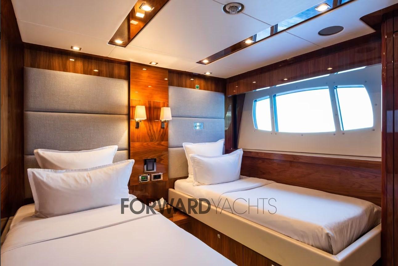 Con i suoi 35 metri, può ospitare fino a 10 persone in 5 comode spaziose cabine: una cabina armatoriale a tutto baglio sul ponte principale a prua con cabina armadio e bagno ensuite; scendendo sottocoperta 2 cabine matrimoniali e 2 cabine ospiti con letti singoli in piano; ognuna con bagno privato e armadi. Ad estrema prua, si trova l'area equipaggio con 3 cabine per 6 persone.