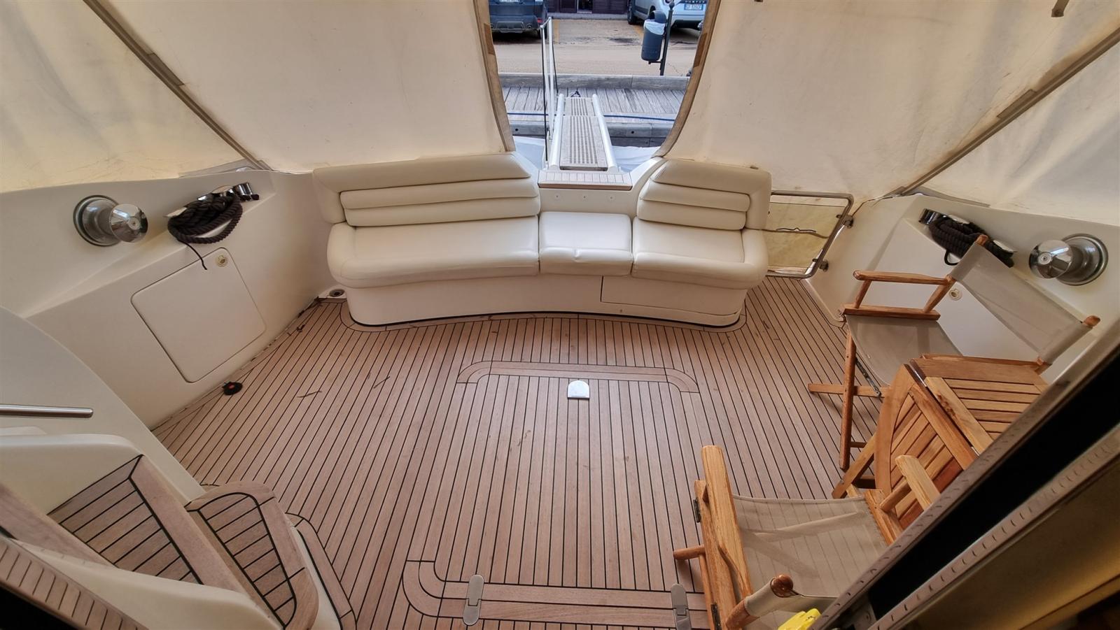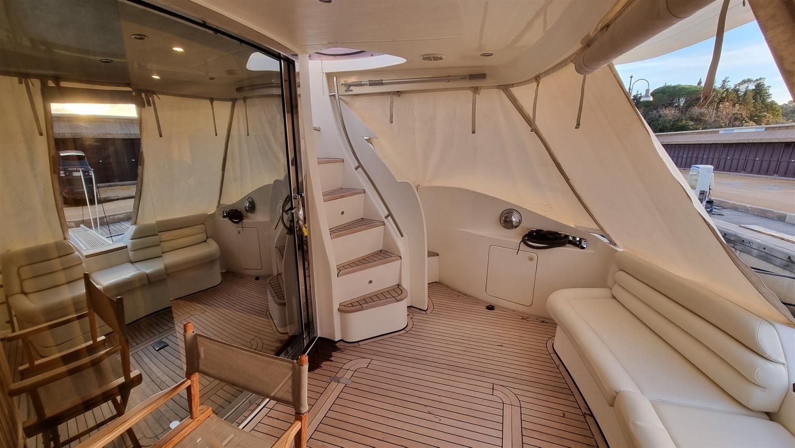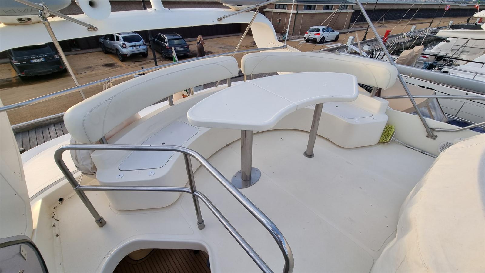 Allarme motore, Allarme sentina, Autoclave, 10 Batterie (2 motori 8 servizi), Doccia esterna, Doppia timoneria, Fari fissi a poppa, Flap idraulici, Impianto antincendio, Indicatori Flaps, Lavaggio catena, Luci di cortesia, Luci subacquee, Passerella, Piattaforma, Pompa di sentina automatica, Pompa di sentina manuale, Porta ingresso, Pozzetto Teak, Presa 220V banchina, Presa acqua banchina, Raddrizzatore, Rollbar, Salpa Ancore Elettrico, Scaletta da bagno, Tromba, 2 Winch, Winch tonneggio di prua.