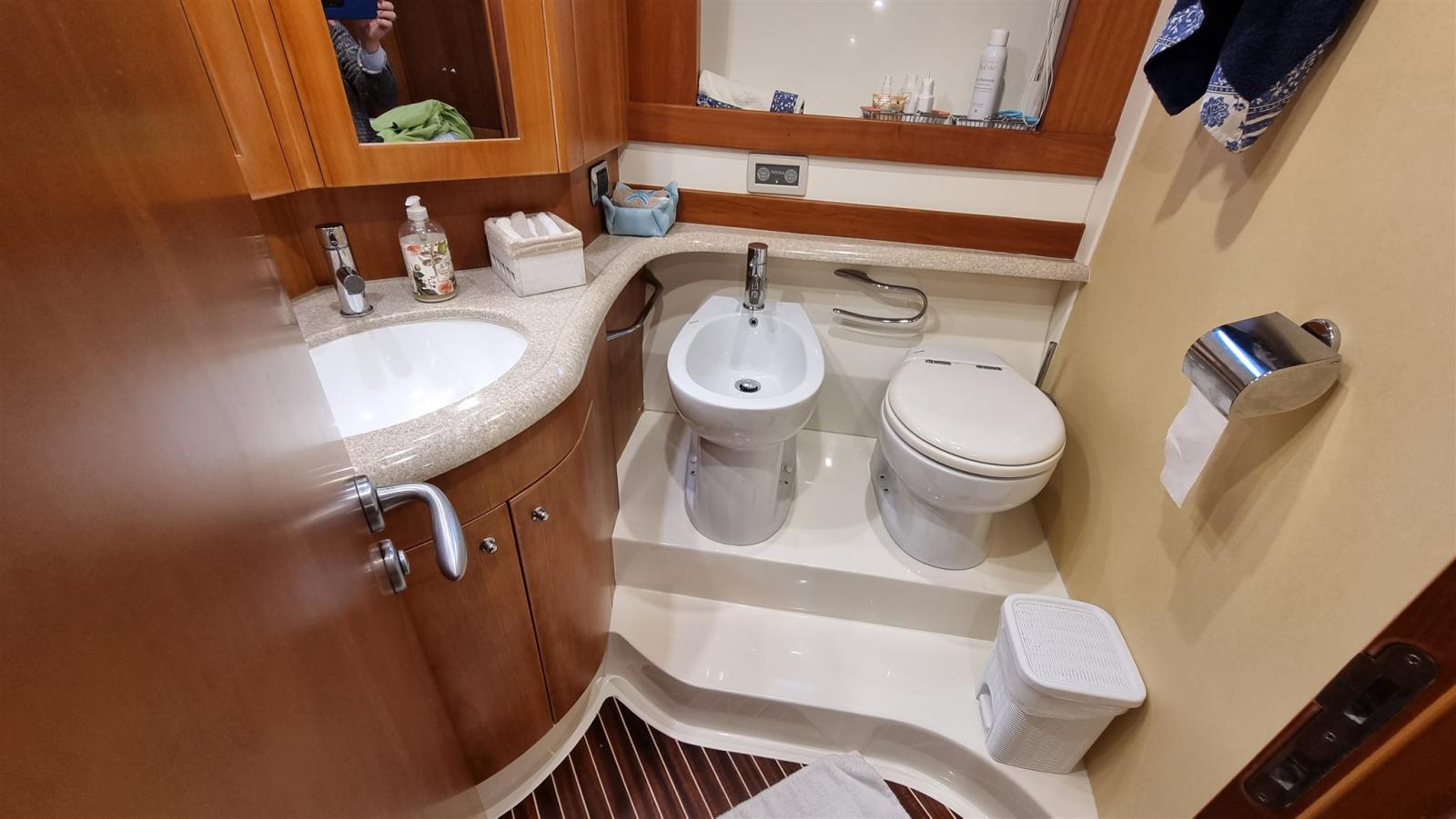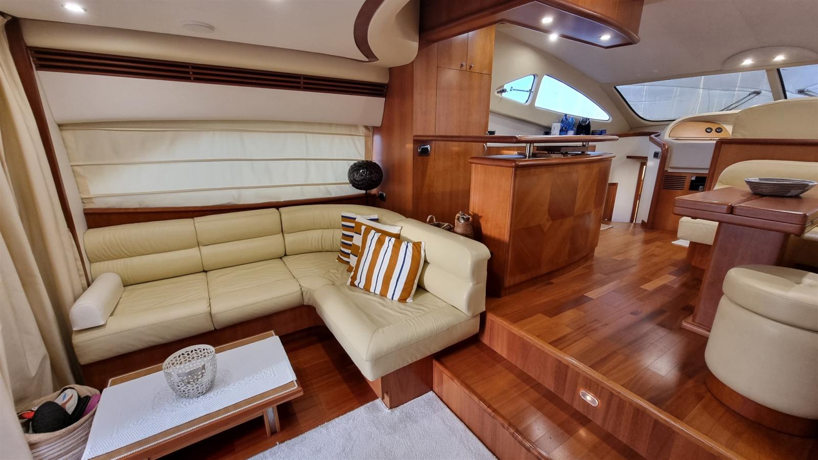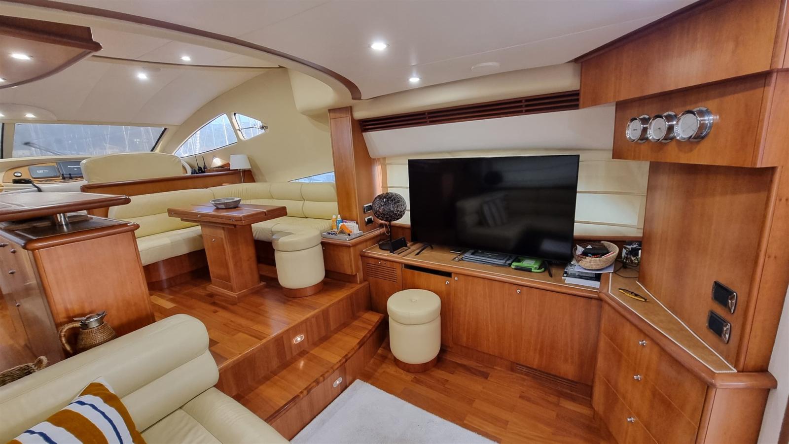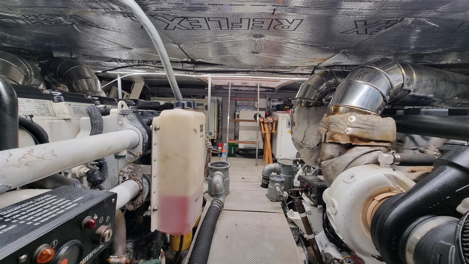 Allarme motore, Allarme sentina, Autoclave, 10 Batterie (2 motori 8 servizi), Doccia esterna, Doppia timoneria, Fari fissi a poppa, Flap idraulici, Impianto antincendio, Indicatori Flaps, Lavaggio catena, Luci di cortesia, Luci subacquee, Passerella, Piattaforma, Pompa di sentina automatica, Pompa di sentina manuale, Porta ingresso, Pozzetto Teak, Presa 220V banchina, Presa acqua banchina, Raddrizzatore, Rollbar, Salpa Ancore Elettrico, Scaletta da bagno, Tromba, 2 Winch, Winch tonneggio di prua.